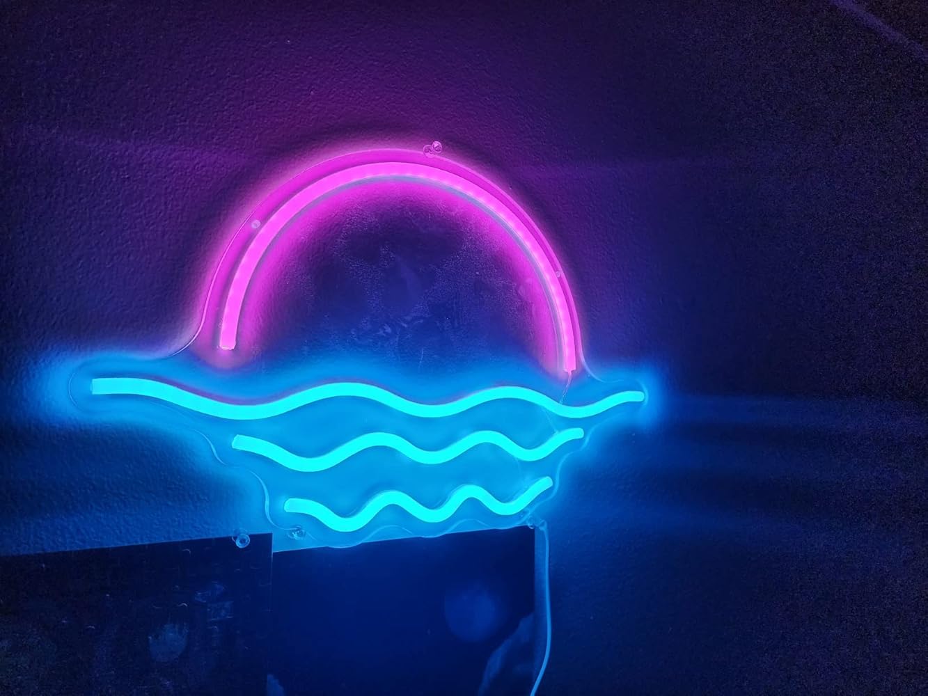 • Simple Setup, Instant Glow: Mounted on a premium clear backboard with pre-drilled holes, this neon sign is incredibly easy to install—just hang it up and plug it in via USB. The soft blue and yellow glow transforms any plain wall into a visual highlight without overwhelming your space.