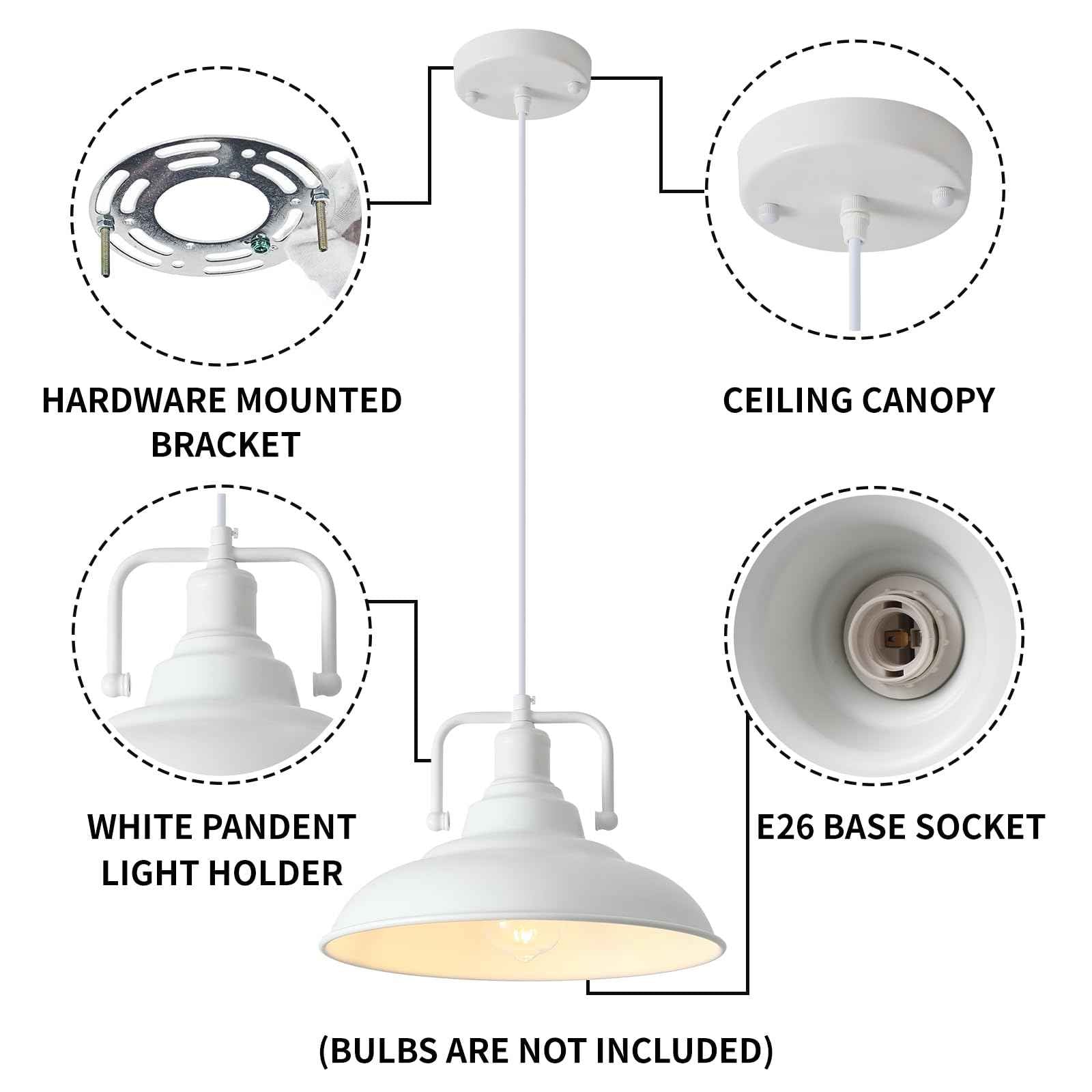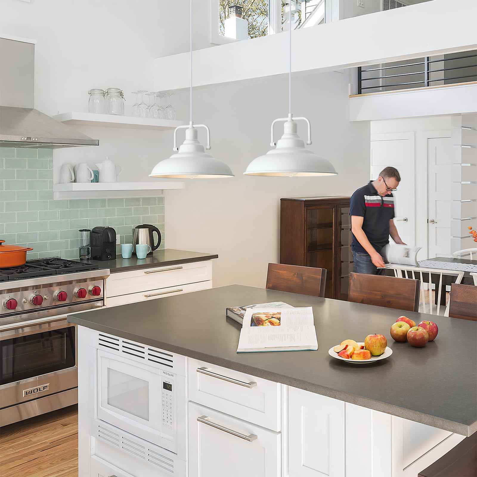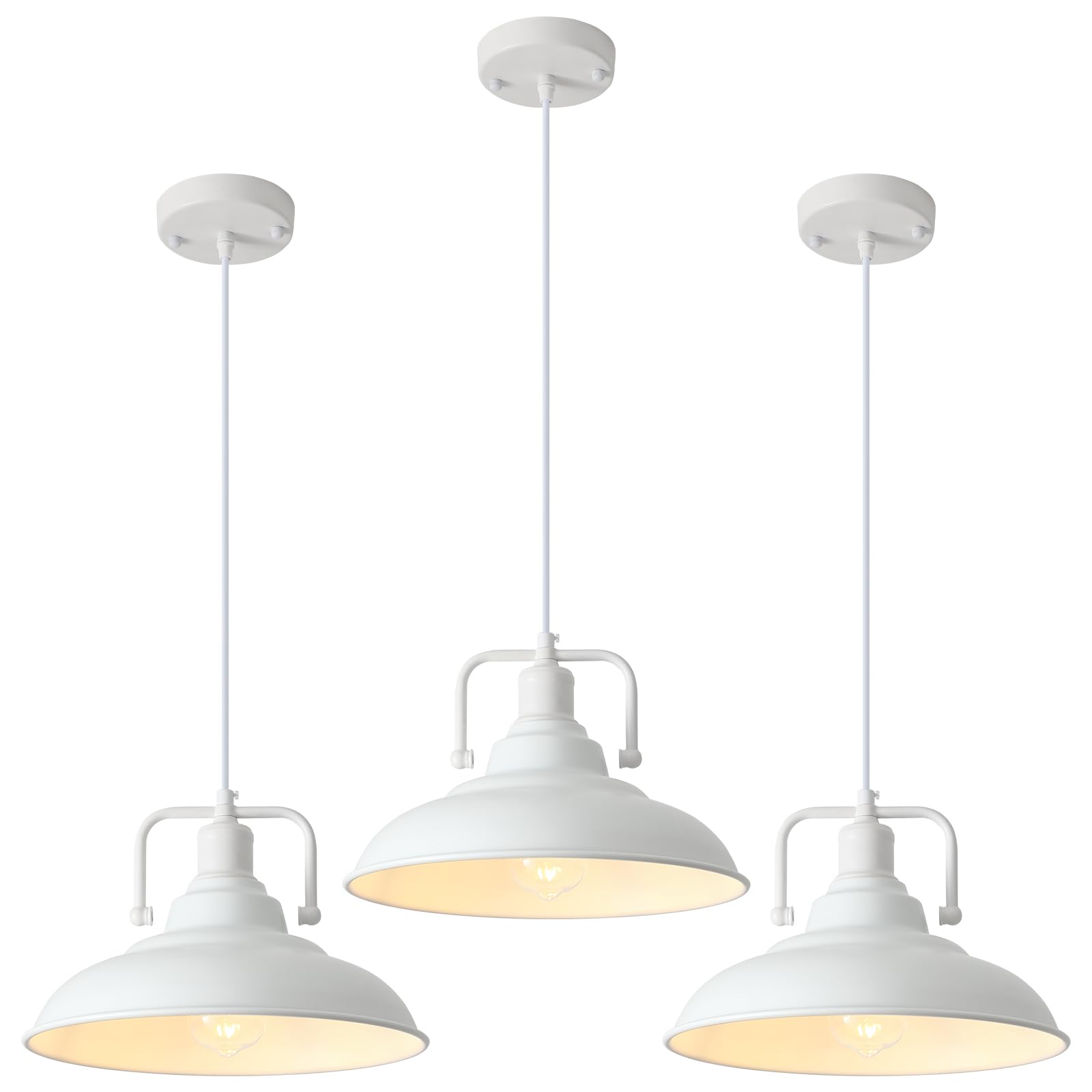 Farmhouse Pendant Light, 12.5inch, 3 Packs- White Kitchen Pendant Lights, Industrial Pendant Light, Pendant Lights Kitchen Island, Pendant Light for Bedroom, Office, Kichen Sink, Library
