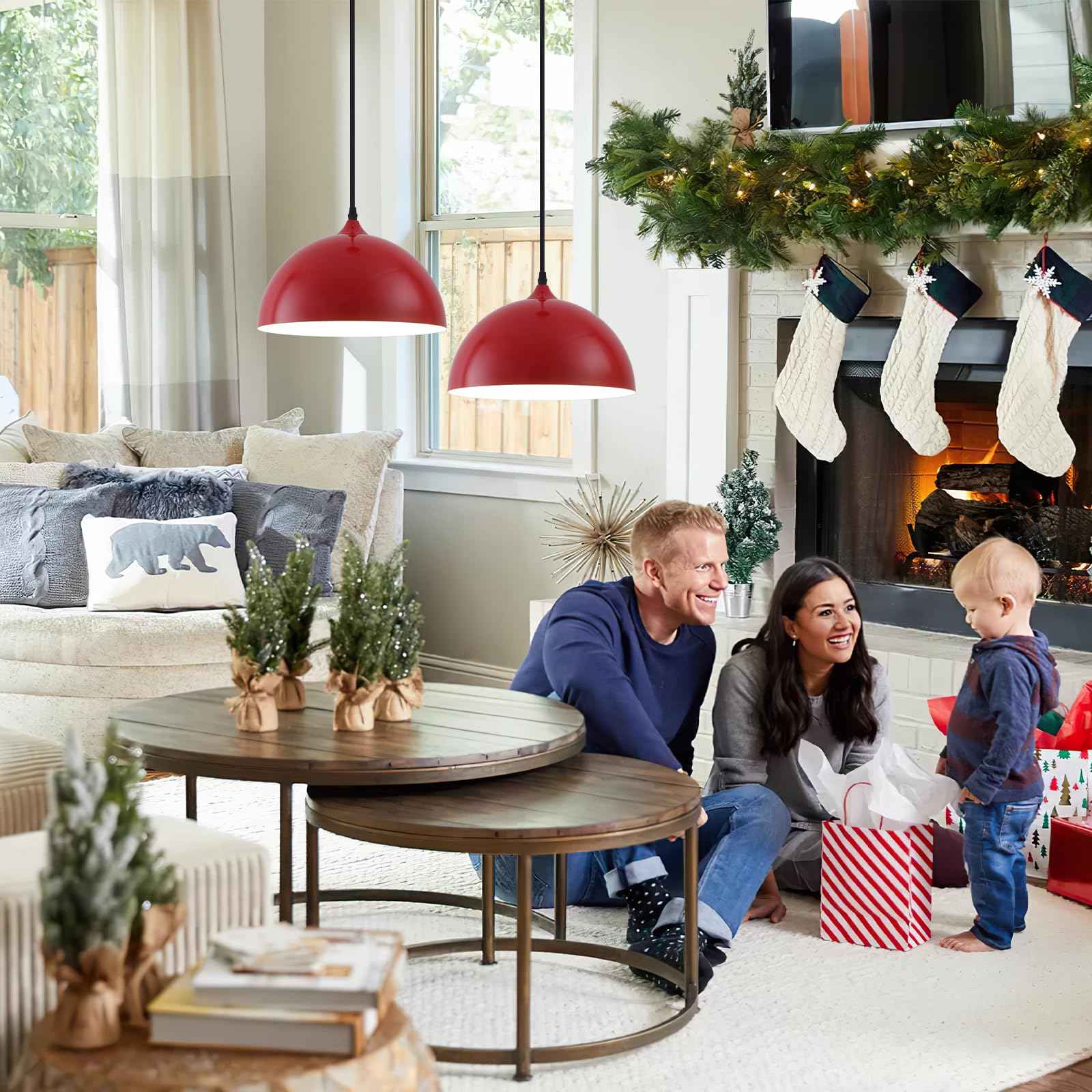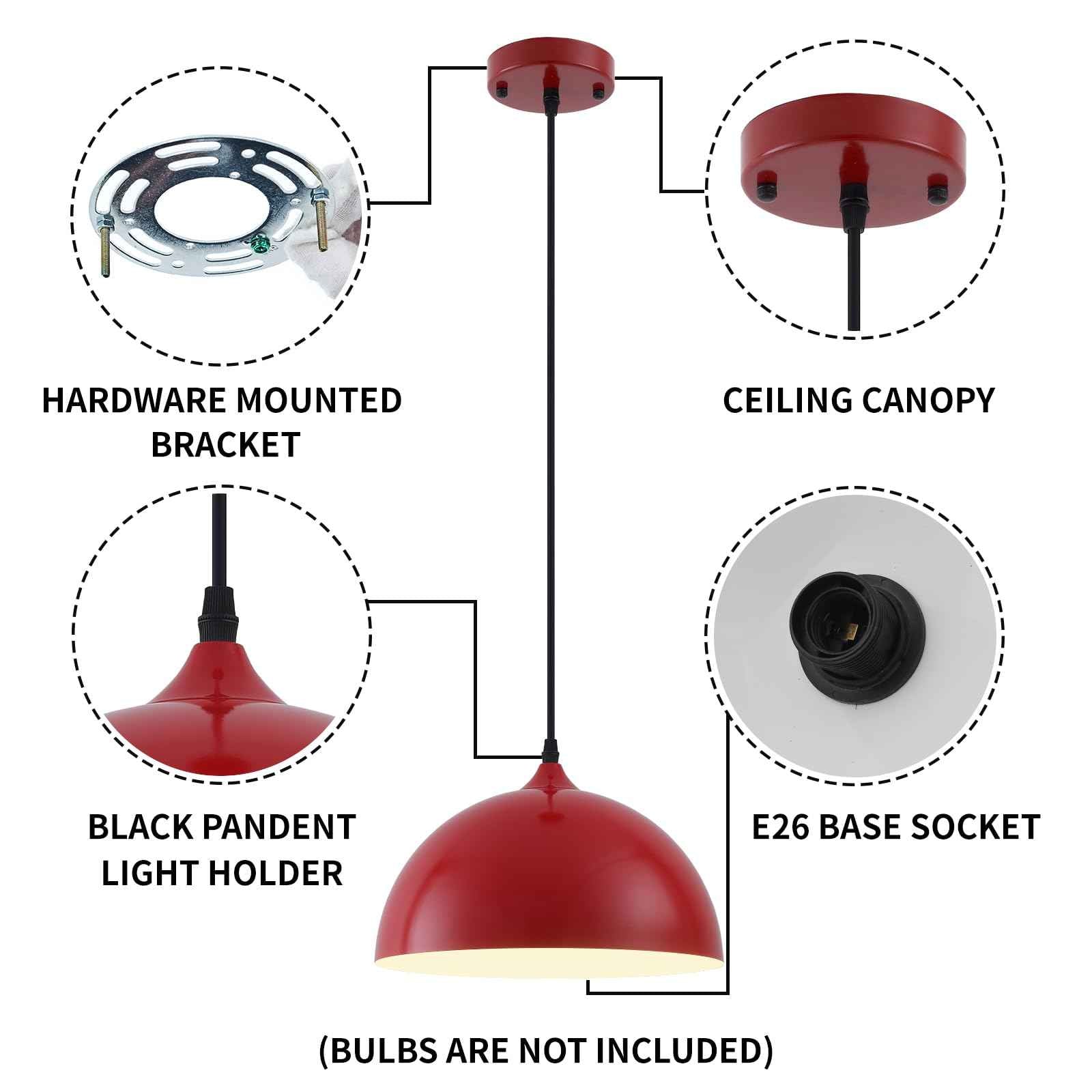 Red Farmhouse Pendant Light 11.8inches 2 Packs,Kitchen Pendant Lights, Industrial Pendant Light, Pendant Lights Kitchen Island for Living Room, Bedroom, Dinning Room, Office