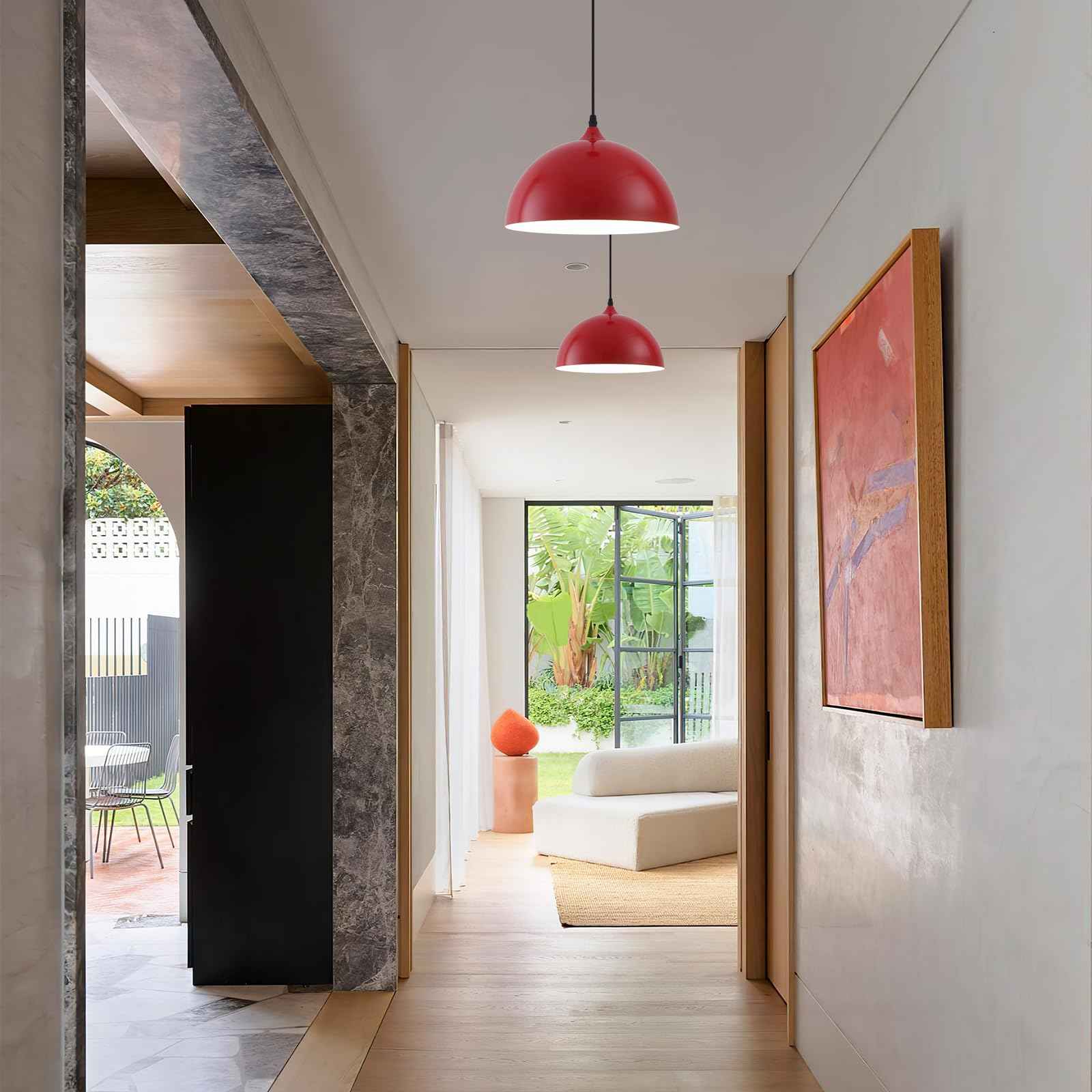Perfect Design:This 2 packs red pendant lighting for kitchen island combines both vintage and industrial styles. This pendant light fixtures are perfect for front warehouses, hallways, dining rooms, kitchen islands, worktops, stairwells, restaurants, etc