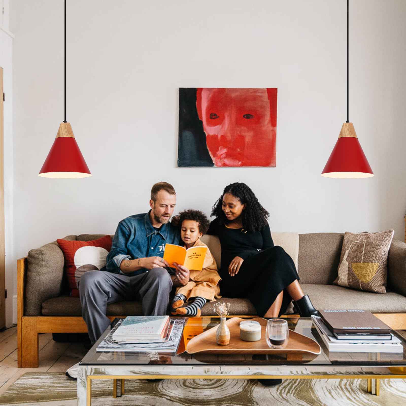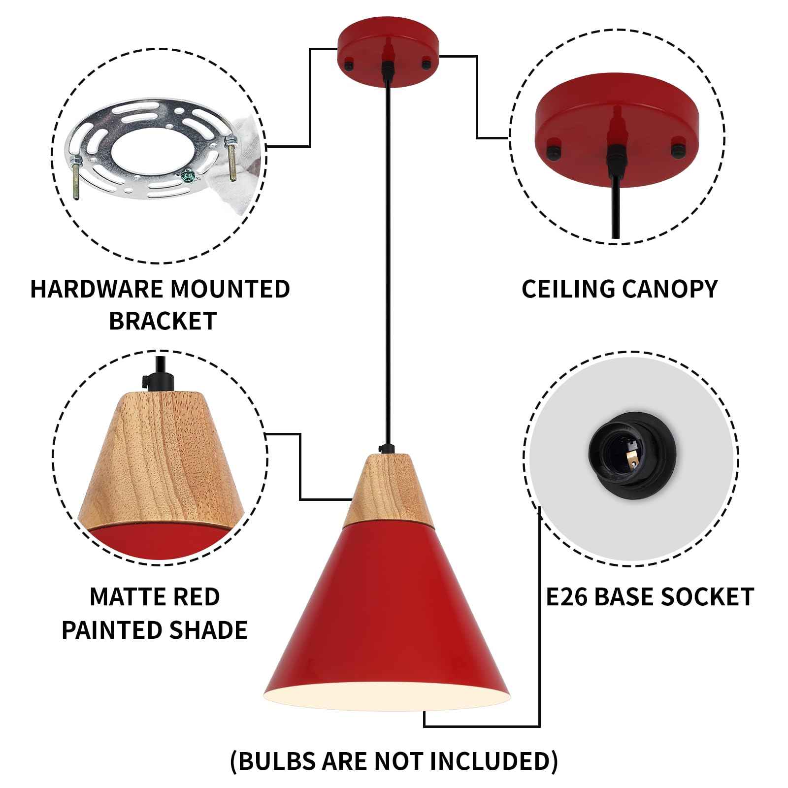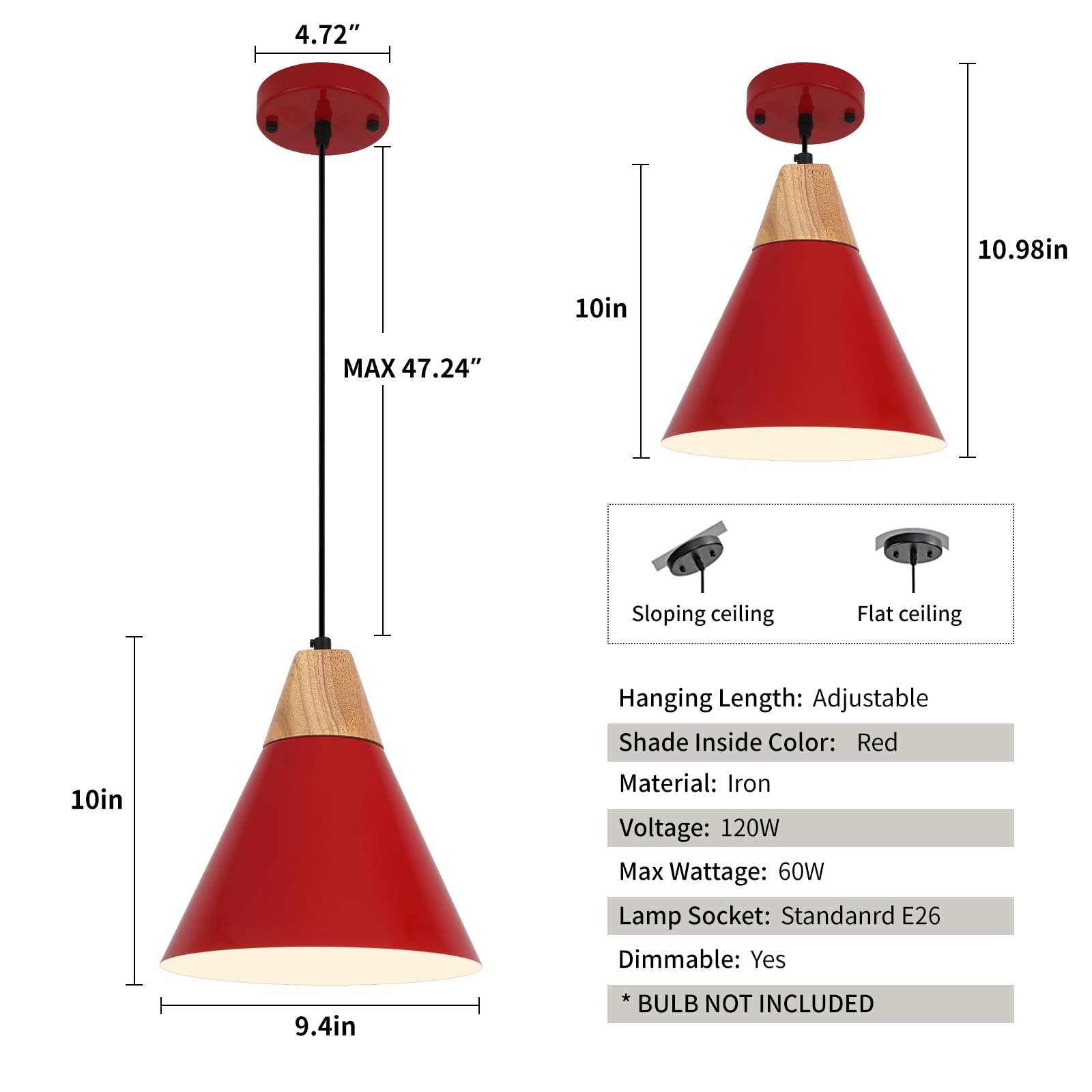 Red Pendant Light, 2 Packs 9.4inch Farmhouse Pendant Light, Kitchen Pendant Lights, Pendant Lights Kitchen Island for Living Room, Bar, Bedroom, Office