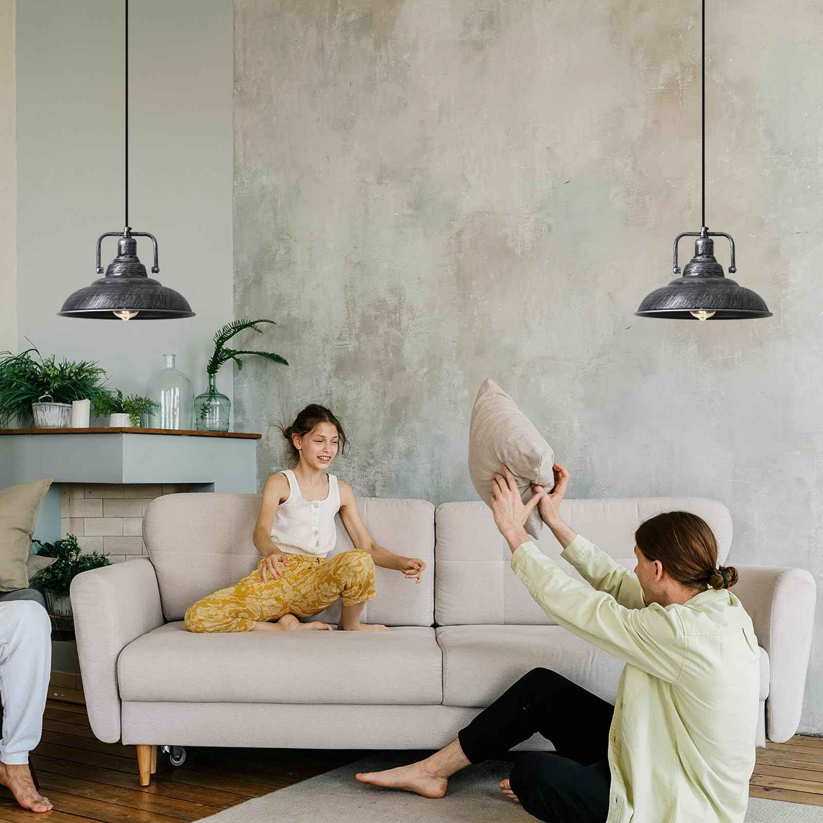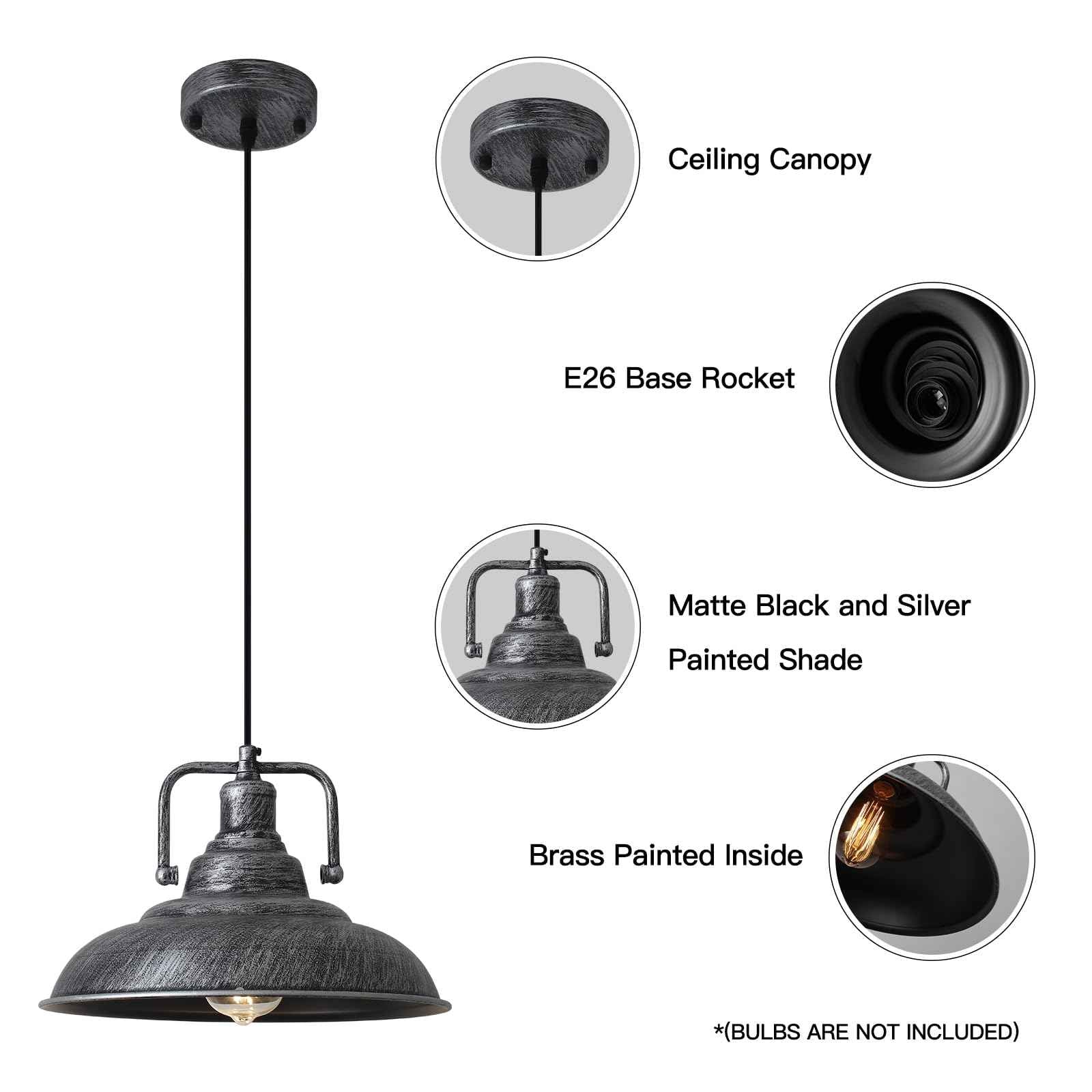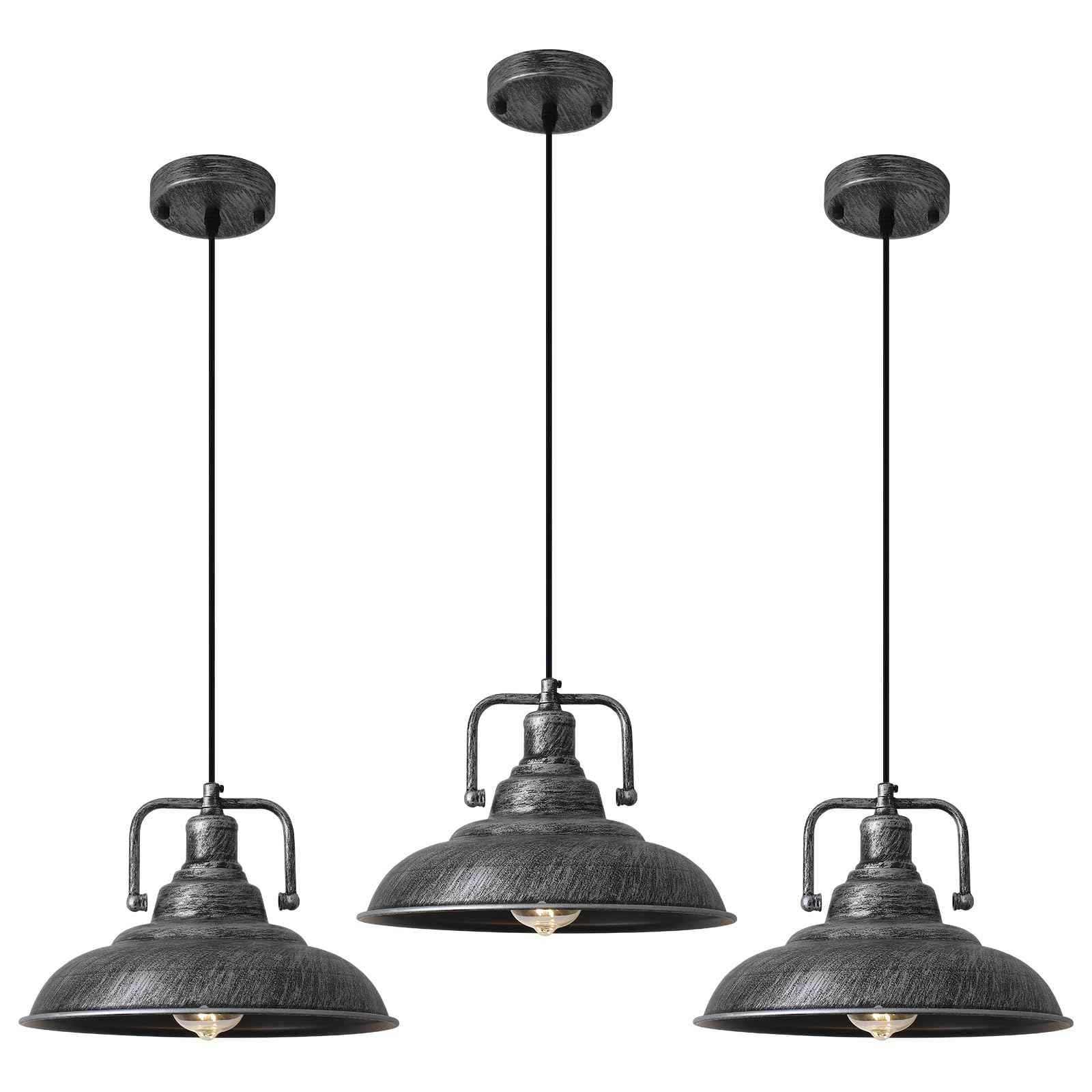 Black and Silver Pendant Light 12.5 inches 3 Packs, Farmhouse Pendant Light, Industrial Pendant Light, Kitchen Pendant Lights, Pendant Lights Kithen Island for Bedroom; Living Room; Kitchen