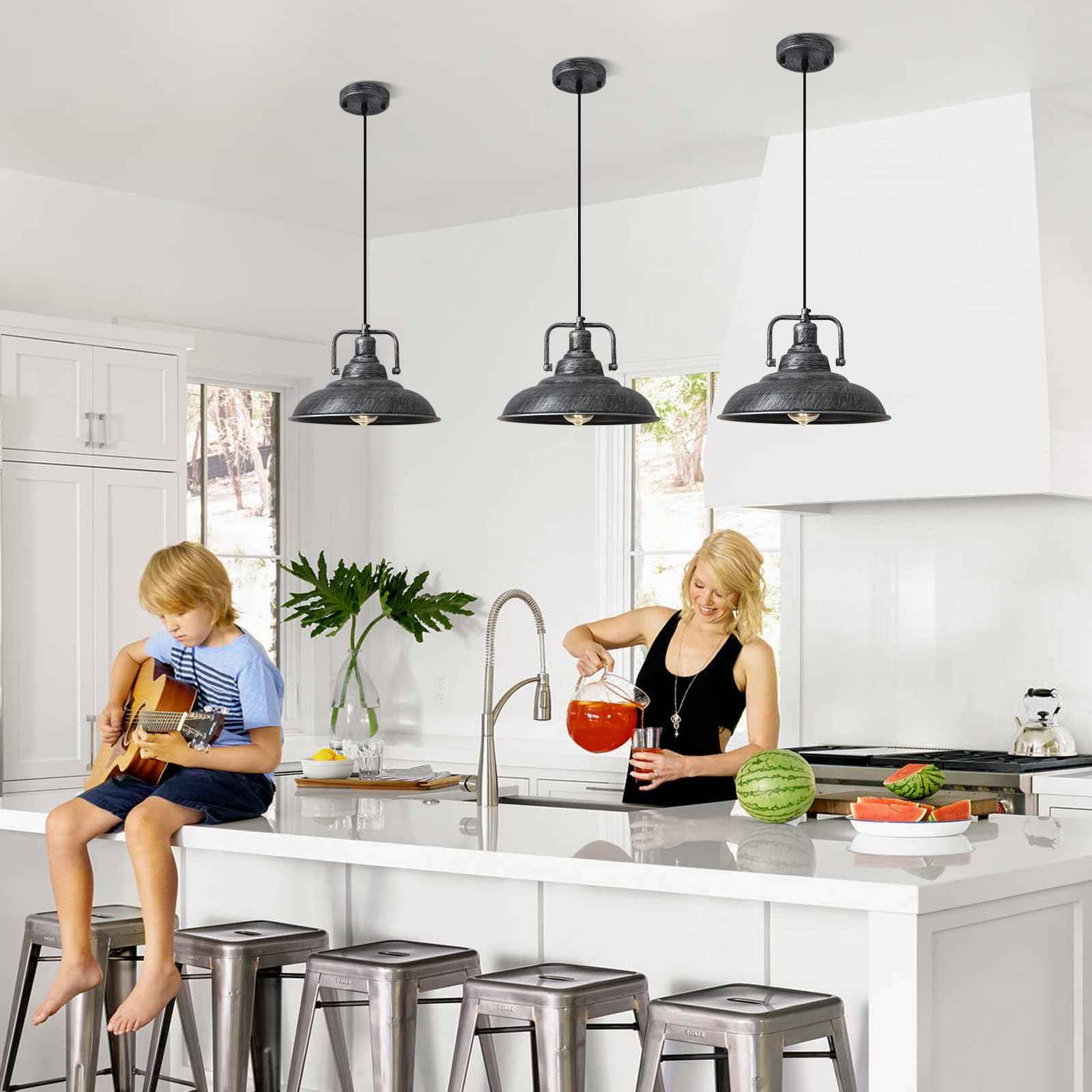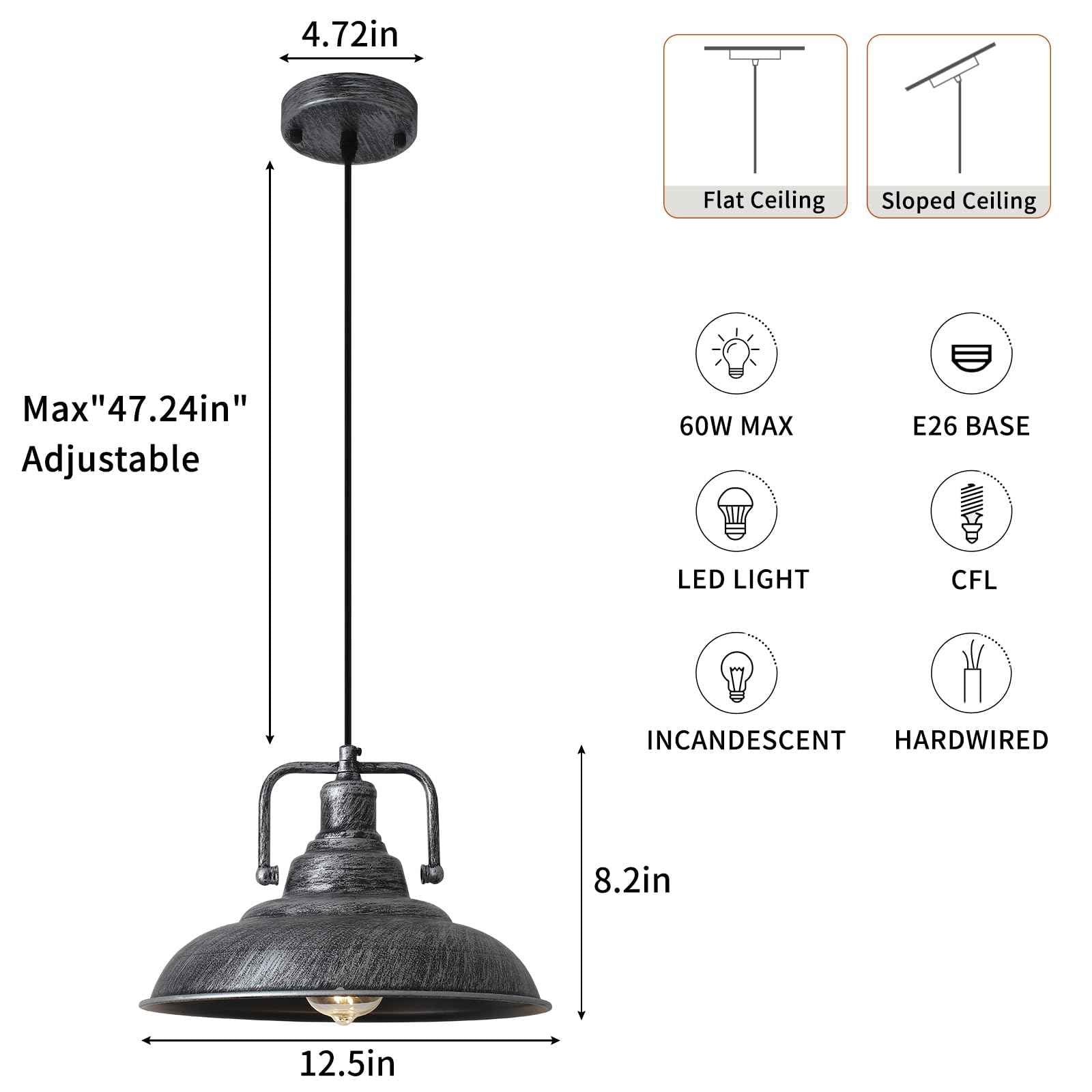 Ideal Dimension:The size of farmhouse pendant lights kitchen island is 12.5 inches W, 8.2 inches H,with 47.24 inches cable,you can adjust according to you .E26 US socket, compatible with a variety of bulbs(Max:60W).Likes Edison,CFL or LED light bulbs, 110-120V. [NOTE]:BULB NOT INCLUDE