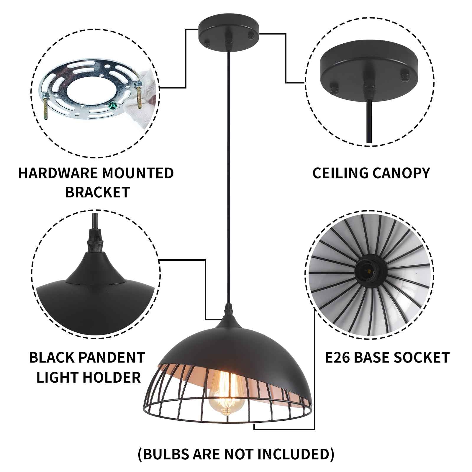 Ideal Dimension:The size of farmhouse pendant light is 11.81inches W,7.87inches H,with 54.7inch cable,you can adjust according to you .E26 US socket, compatible with a variety of bulbs(Max:60W).Likes Edison,CFL or LED light bulbs, 110-120V. [NOTE]:BULB NOT INCLUDE