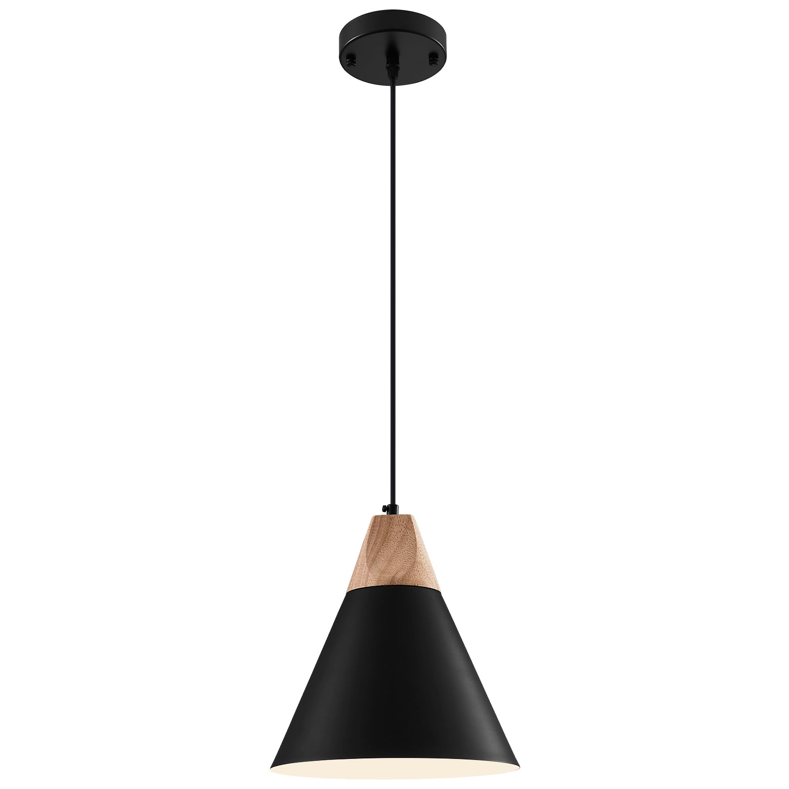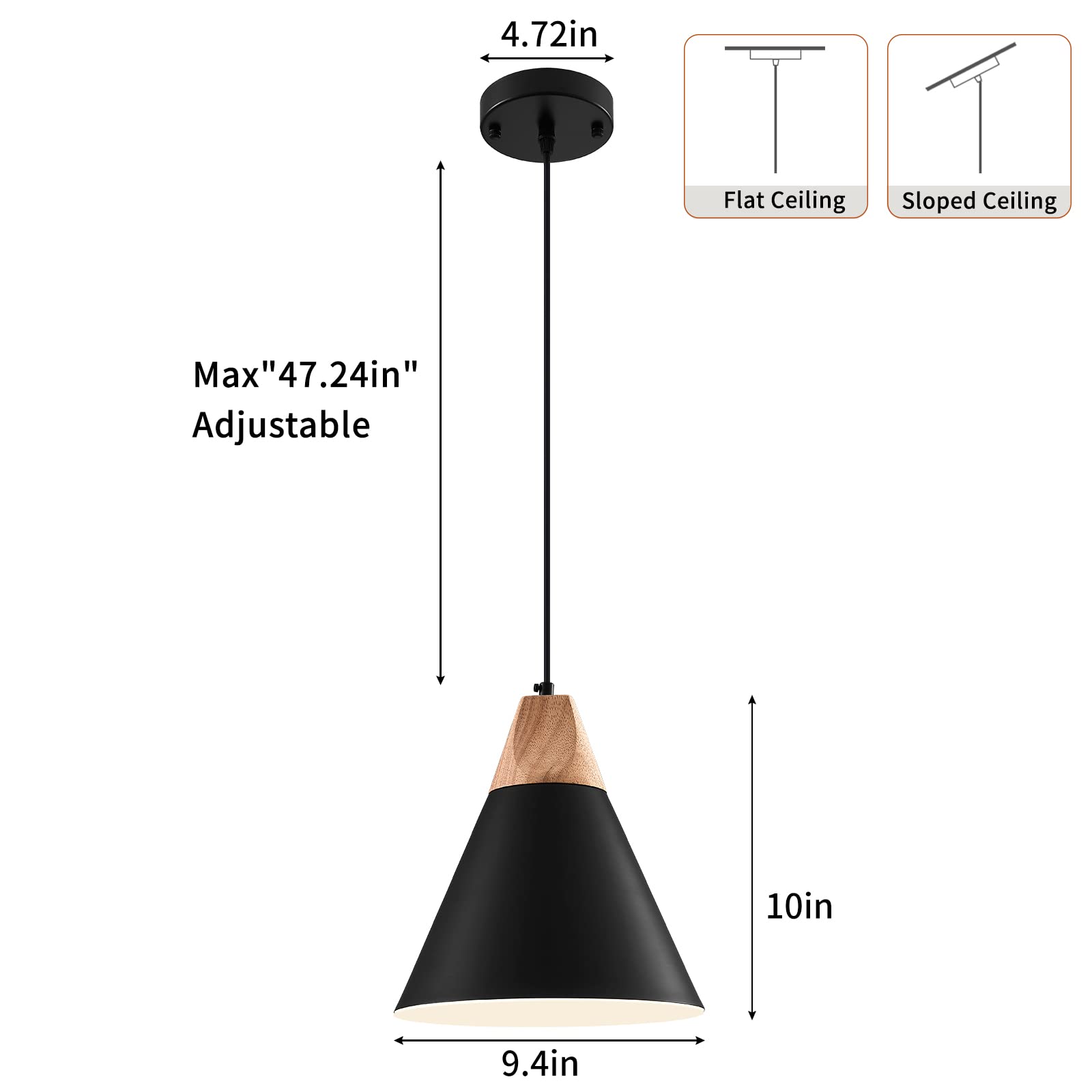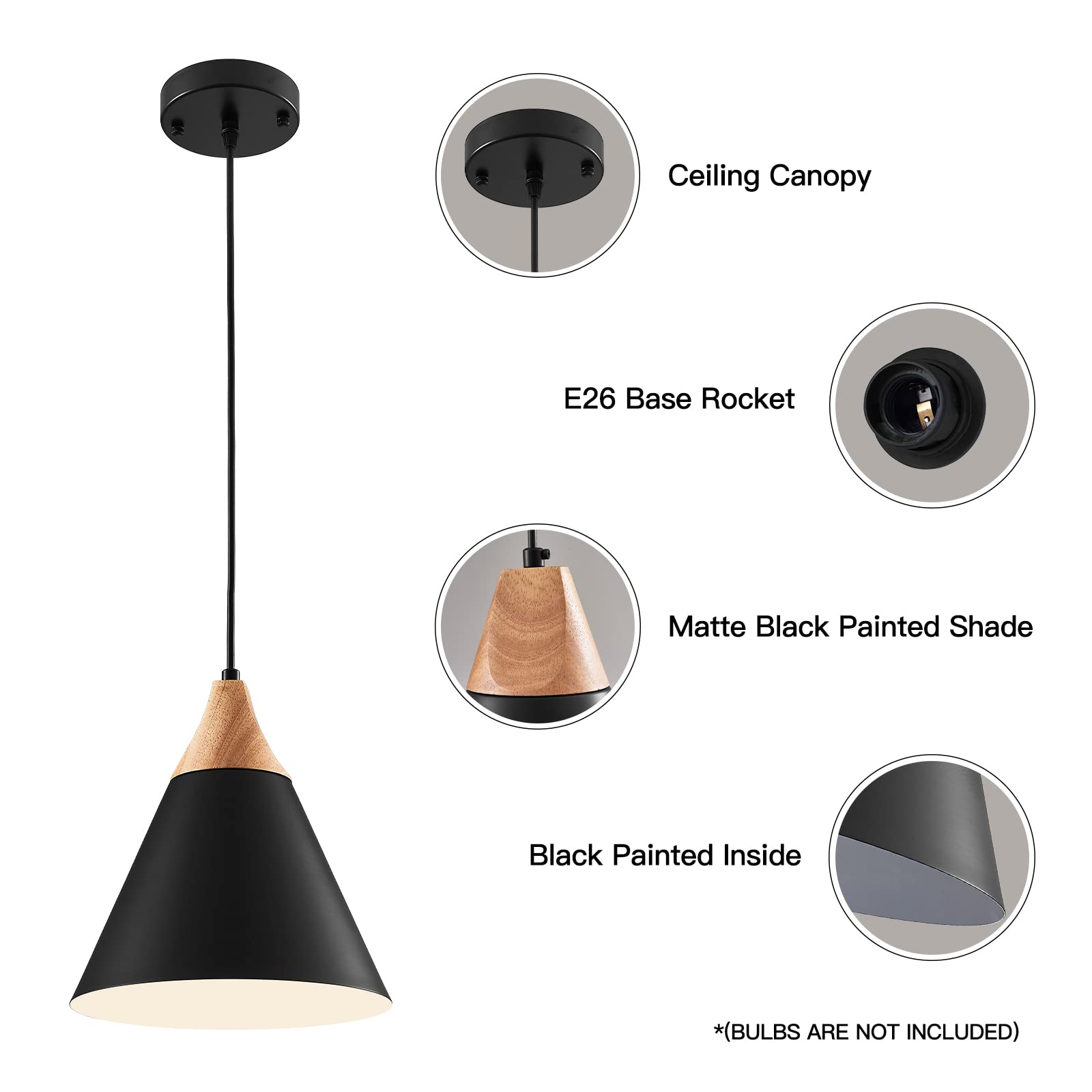 Black Pendent Light Fixtures 1 Pack 9.4 inches,Wood and Metal Kitchen Island Lights Ceiling Hanging,Pendant Lights Kitchen,Farmhouse Kitchen Light Fixtures for Bedroom,Hallway,Bar