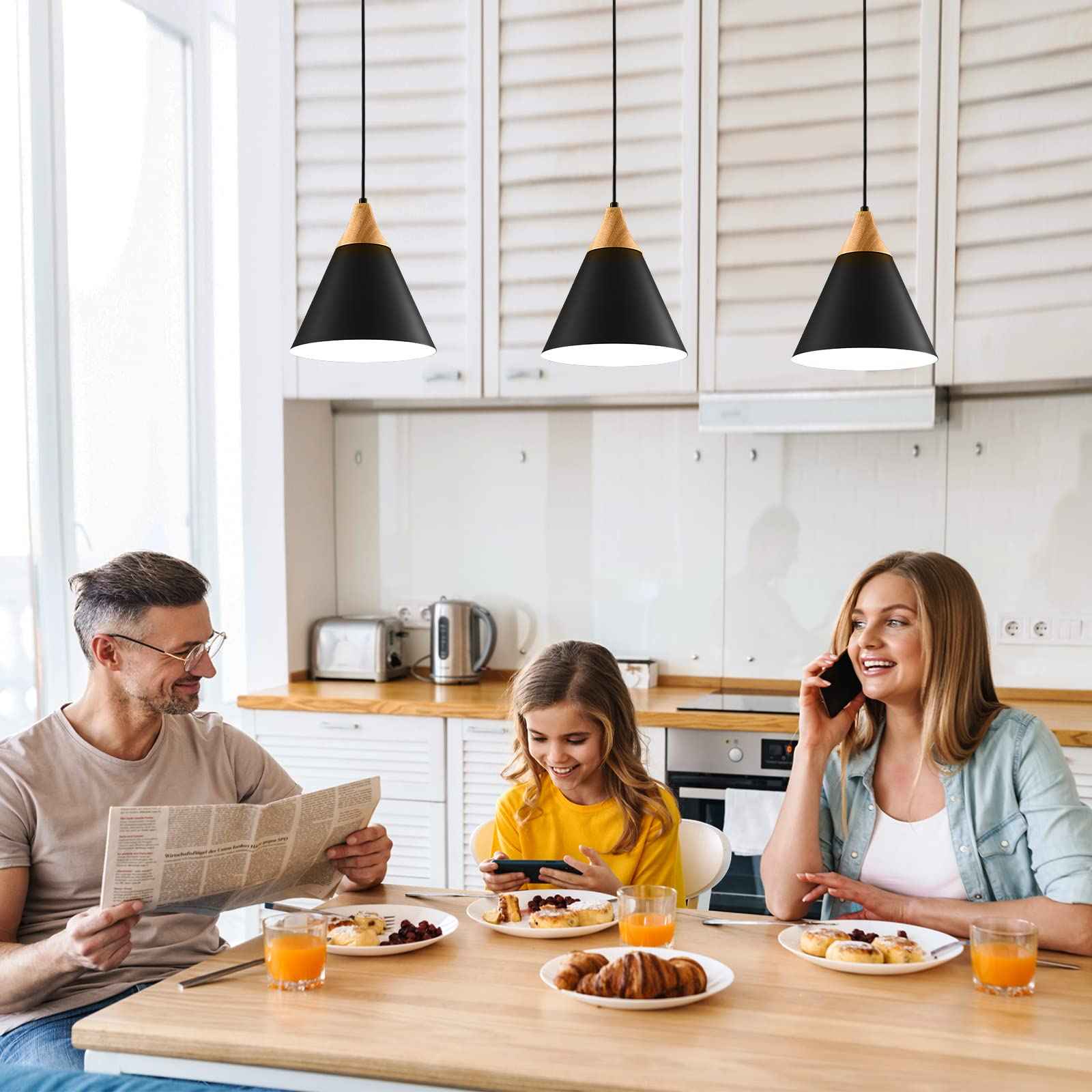 • Hight Quality Matterial:This pendant lights kitchen island is made of high-quality iron material and natural wood. It is made by polishing, welding, painting, etc.it is sturdy, corrosion-resistant and durable.