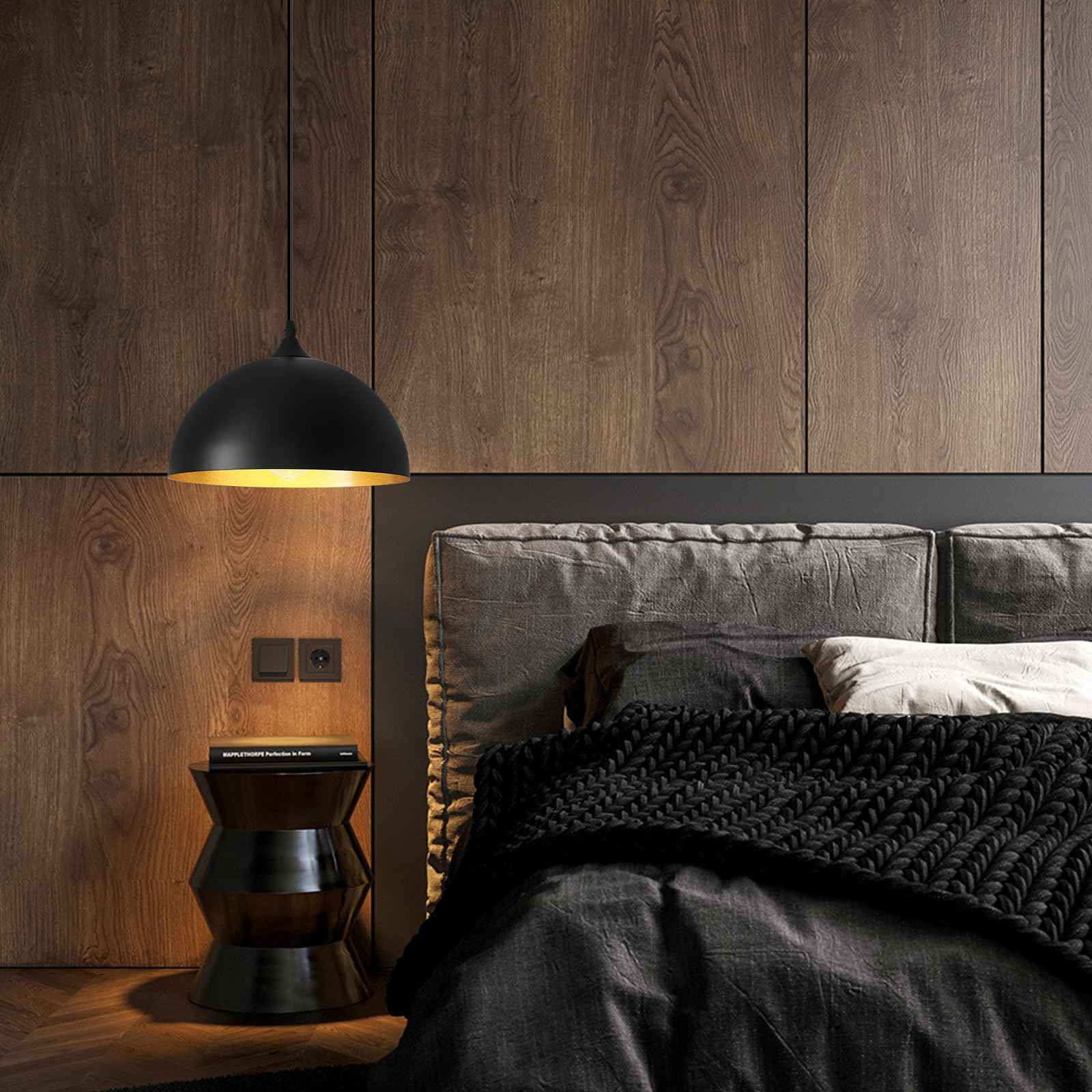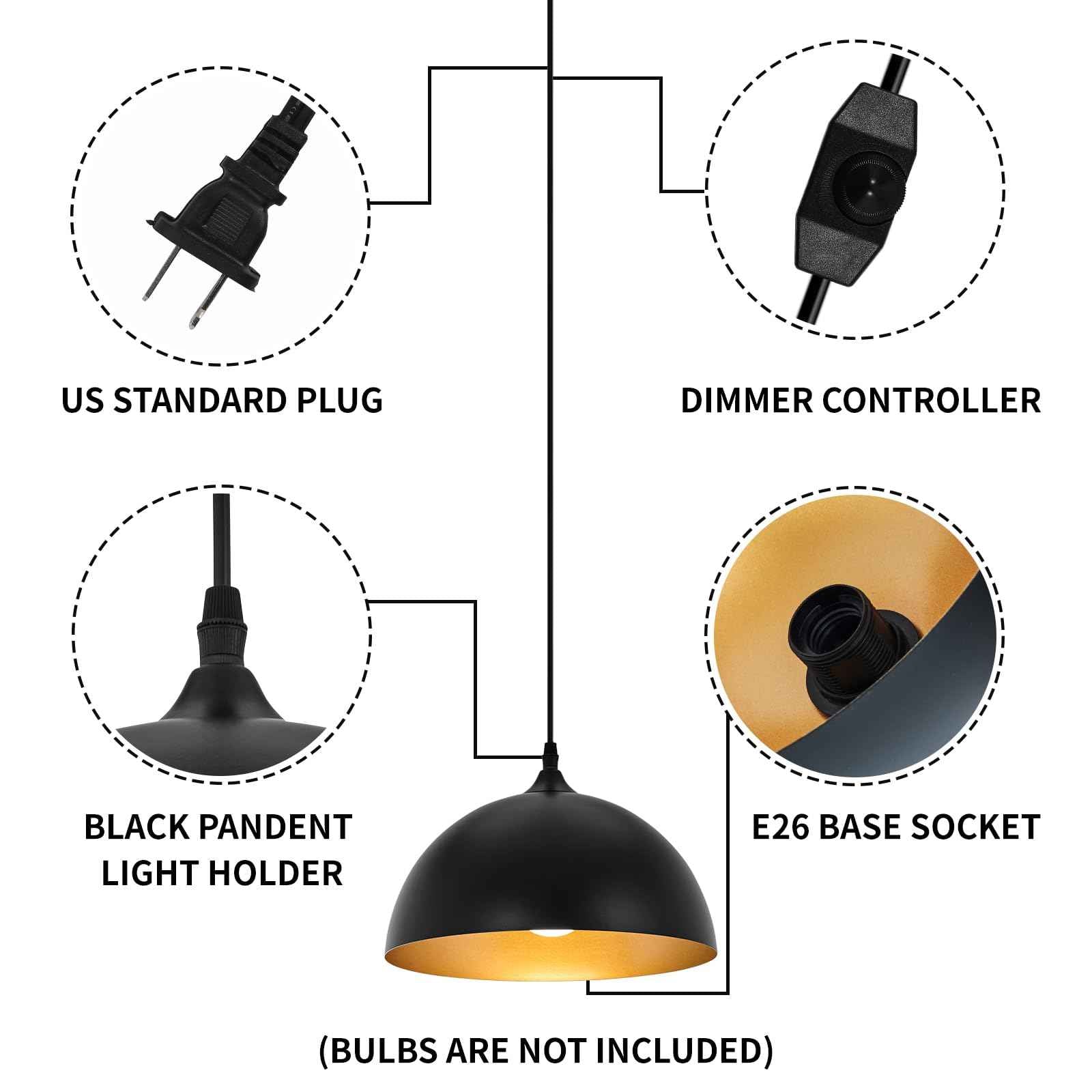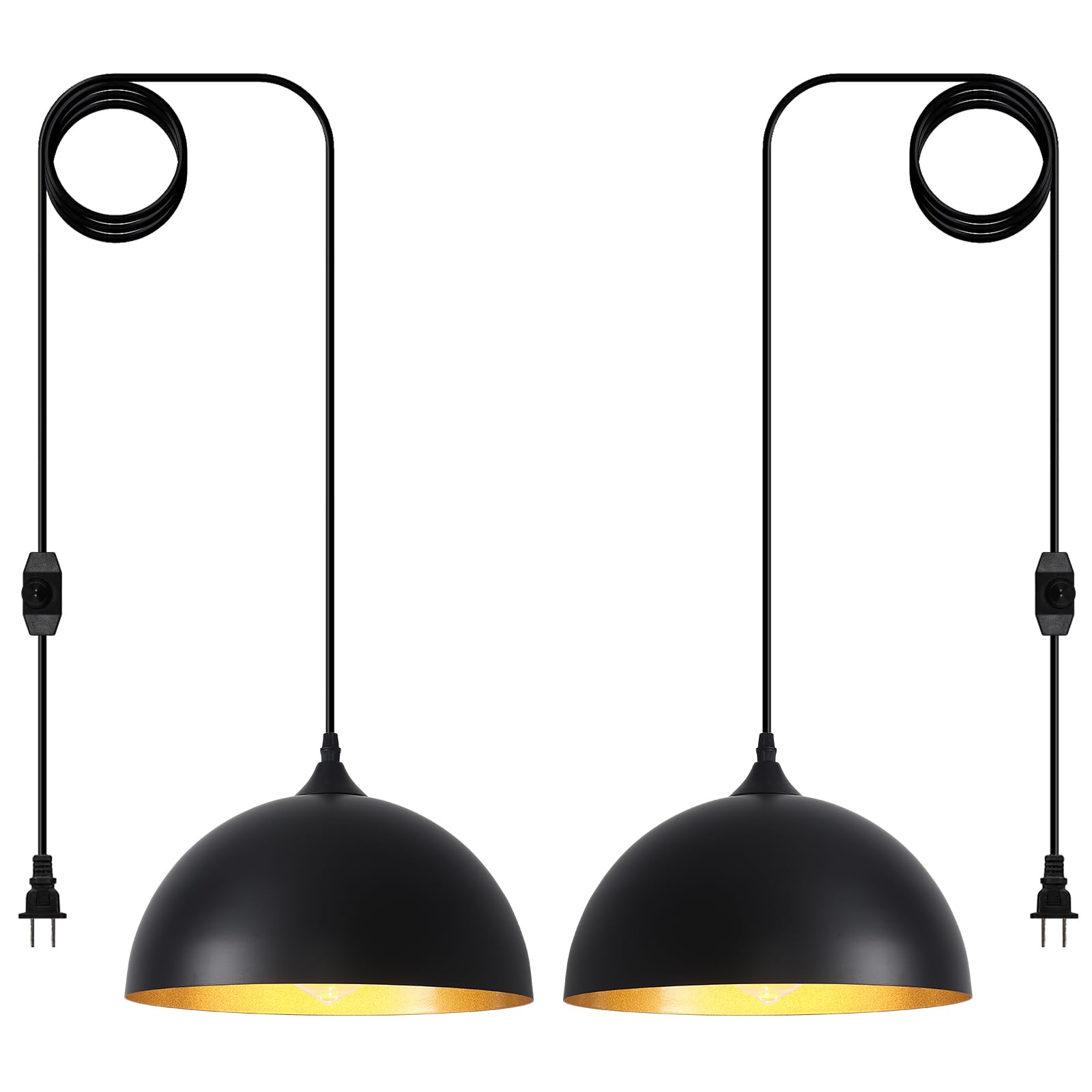Perfect Design:This 2 packs plug in pendant light combines both vintage and industrial styles. This farmhouse pendant light is black on the outside and gold on the inside. They are perfect for Kitchen, Bedroom, Living Room, Dining Room,Hallway
