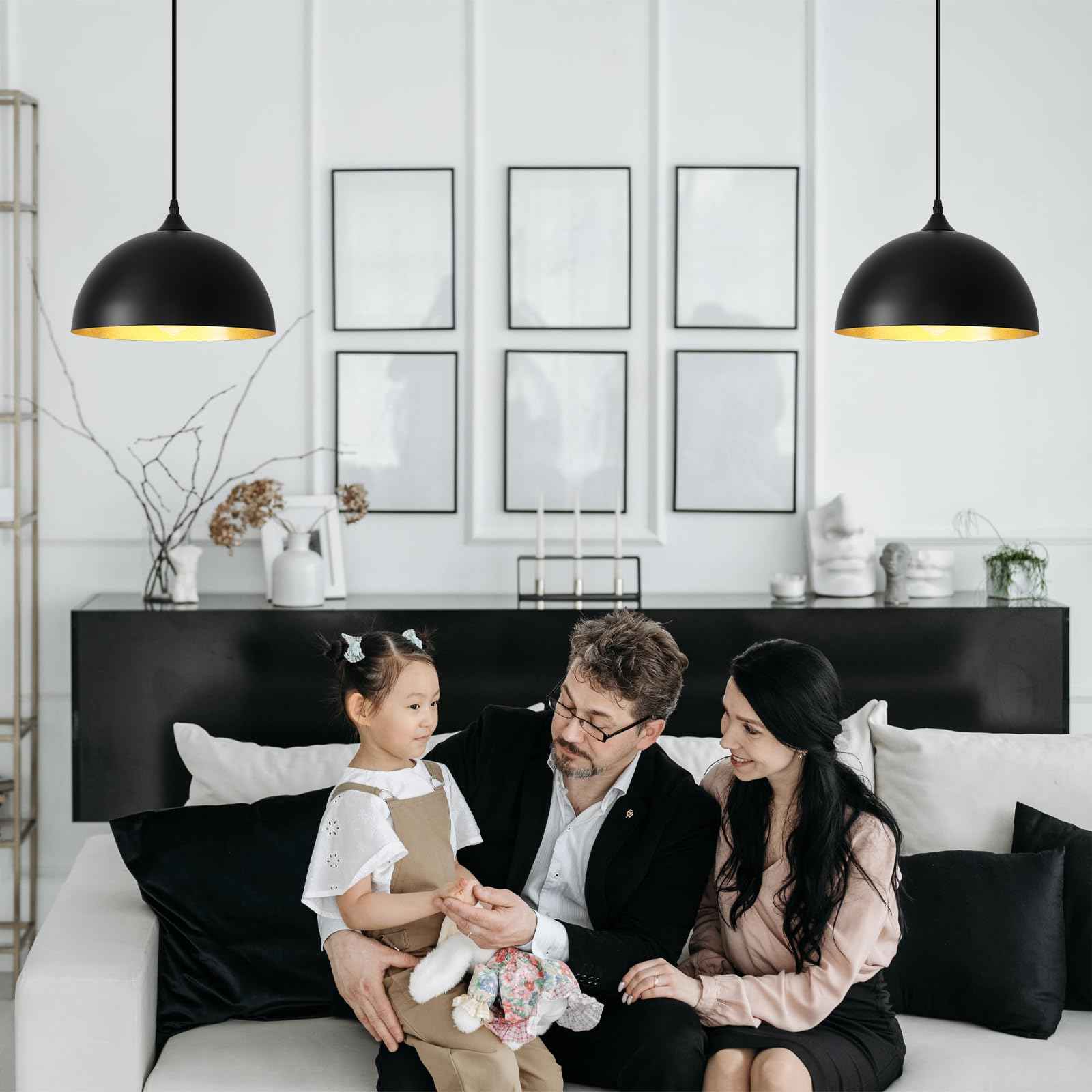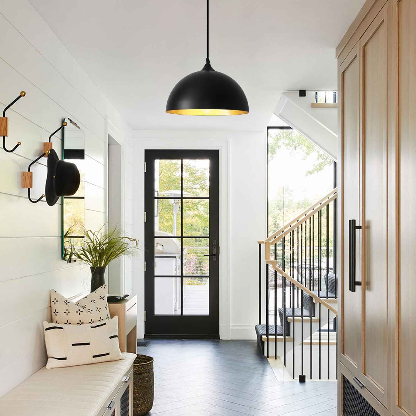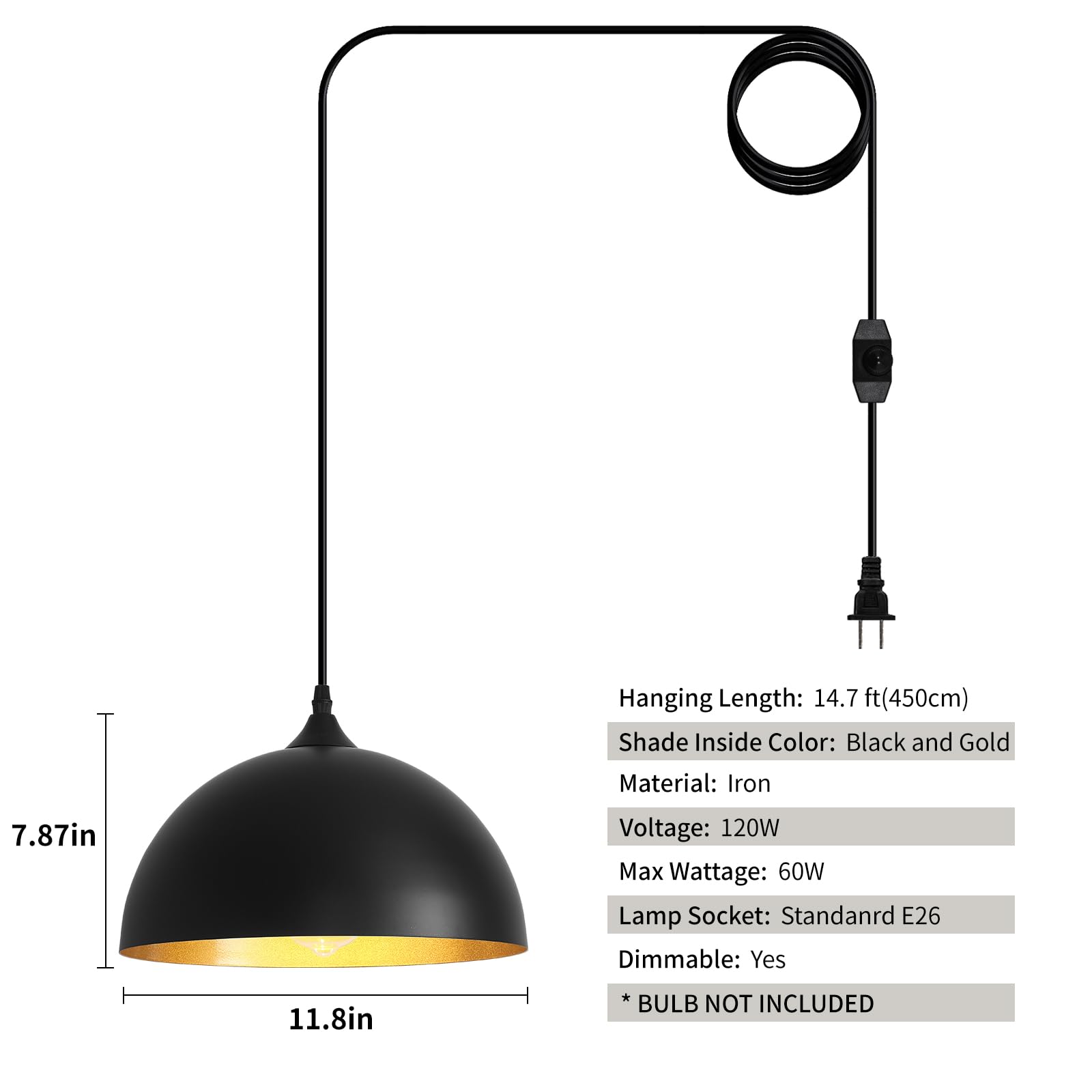 Perfect Design:This 2 packs plug in pendant light combines both vintage and industrial styles. This farmhouse pendant light is black on the outside and gold on the inside. They are perfect for Kitchen, Bedroom, Living Room, Dining Room,Hallway