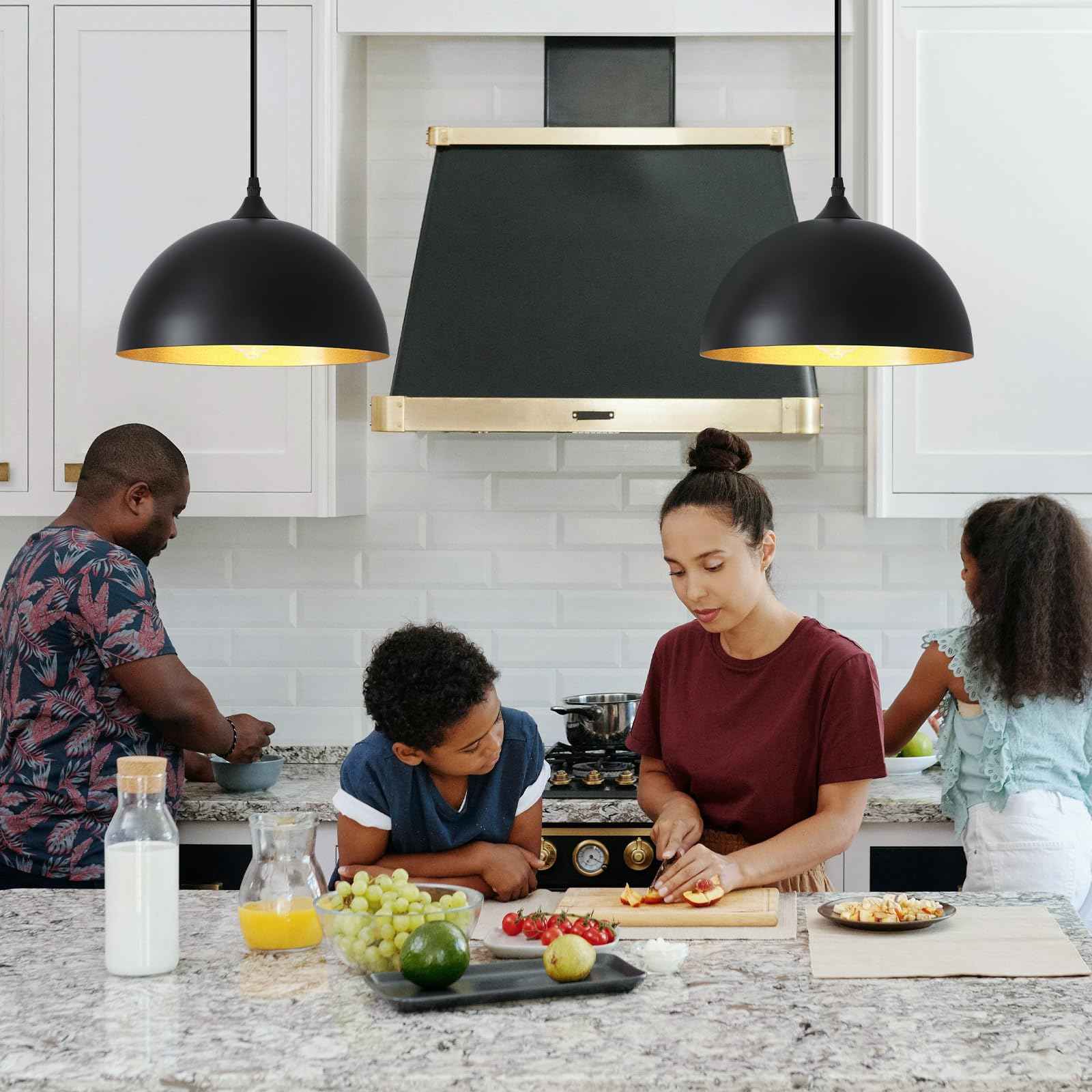 Adjustable Cord: The kitchen pendant lights kitchen island with 14.7ft plug in cord, with a golden finish inside to diffuse the light, Also included in the package are 3 hooks to make it easy for you to organise long cables.Can be installed in all parts of the room, both flat and sloping