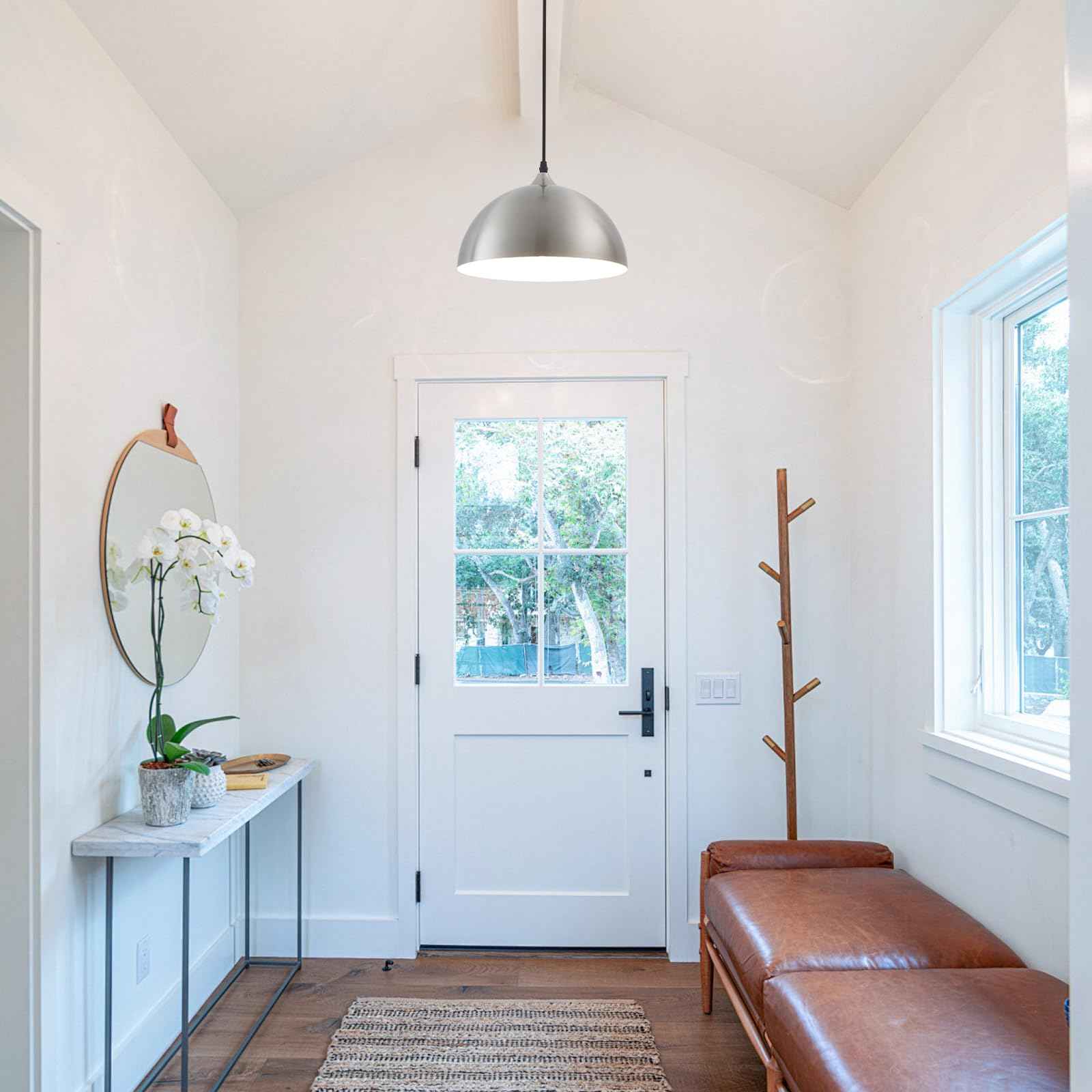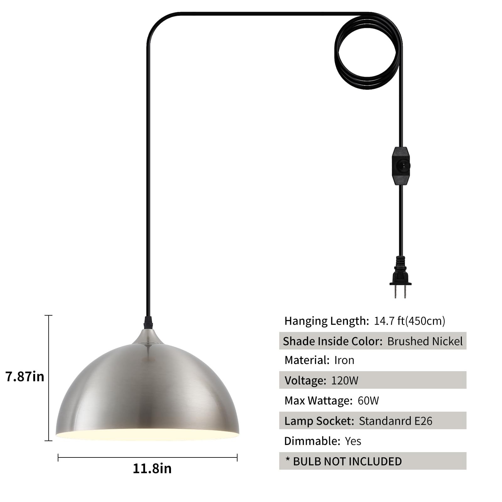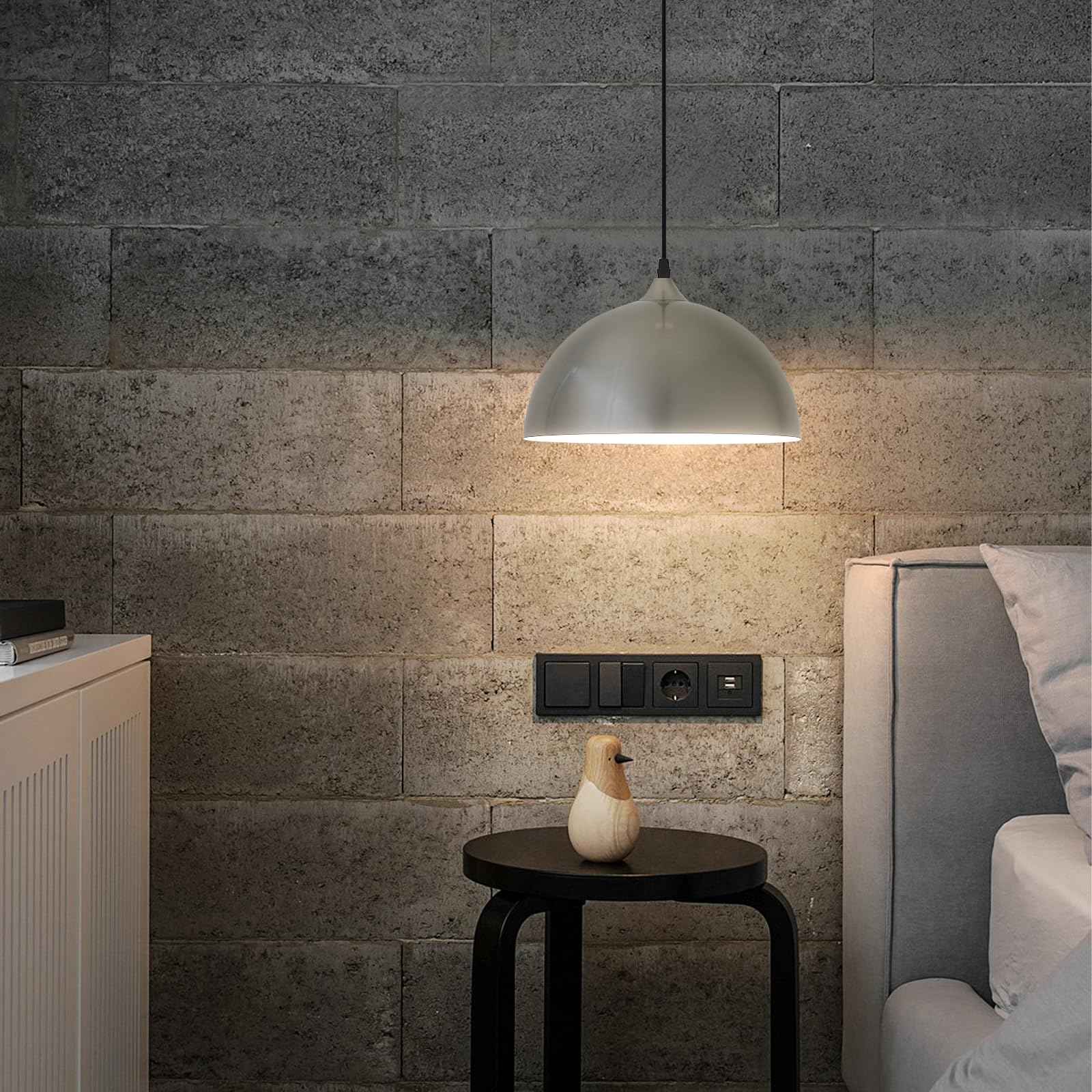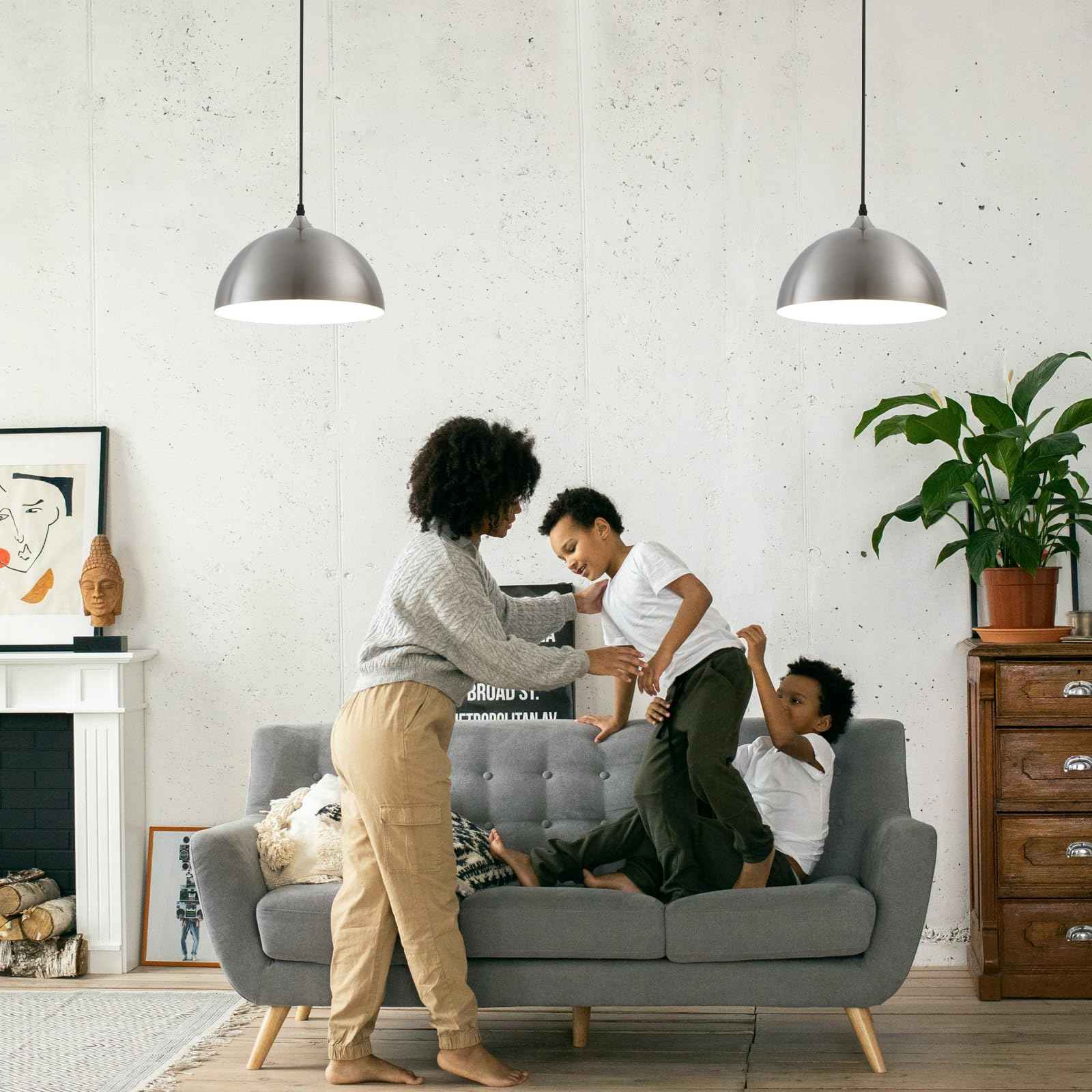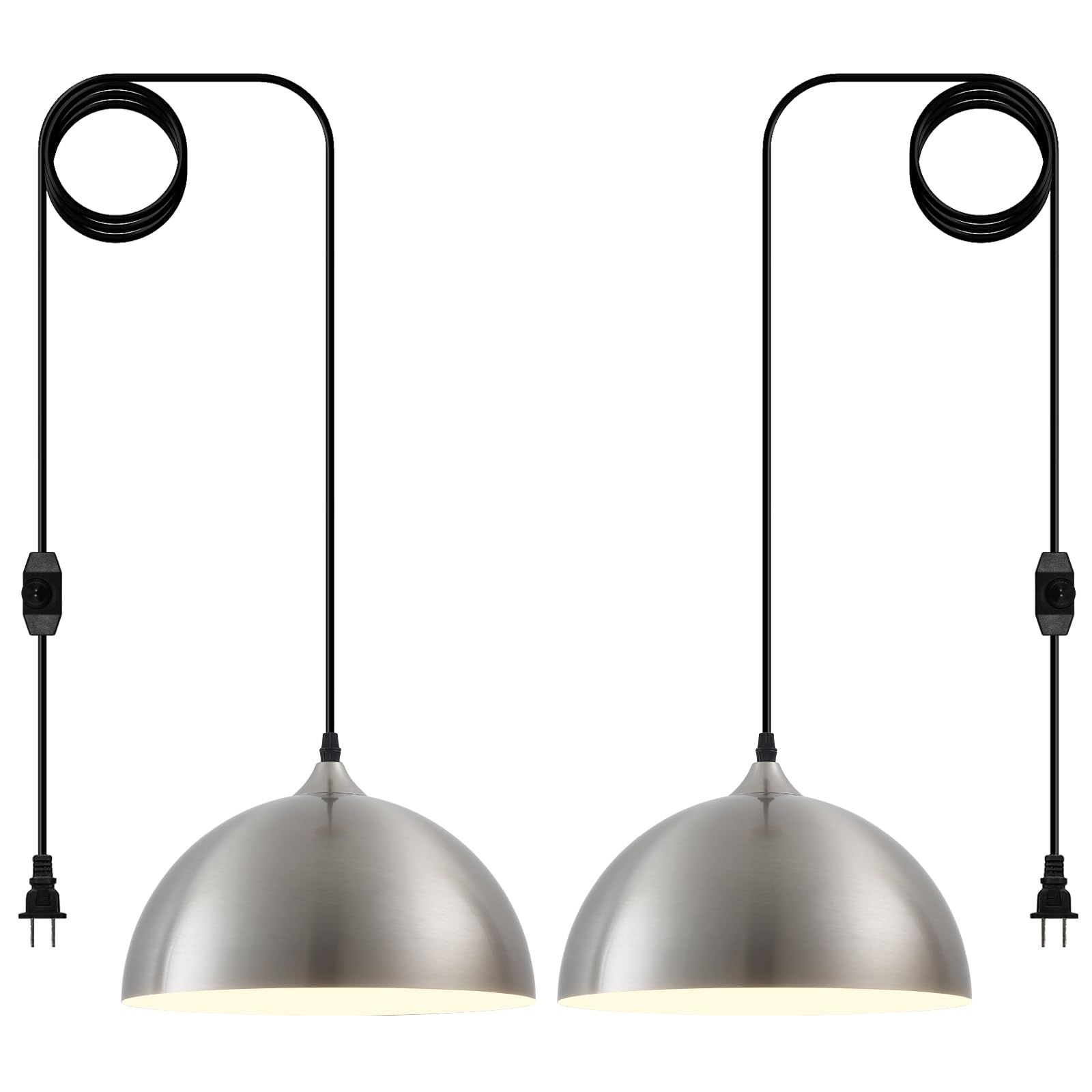 Perfect Design:This 2 packs plug in pendant light combines both vintage and industrial styles. This farmhouse pendant light is Brushed Nickel on the outside and white on the inside. They are perfect for Kitchen, Bedroom, Living Room, Dining Room,Hallway