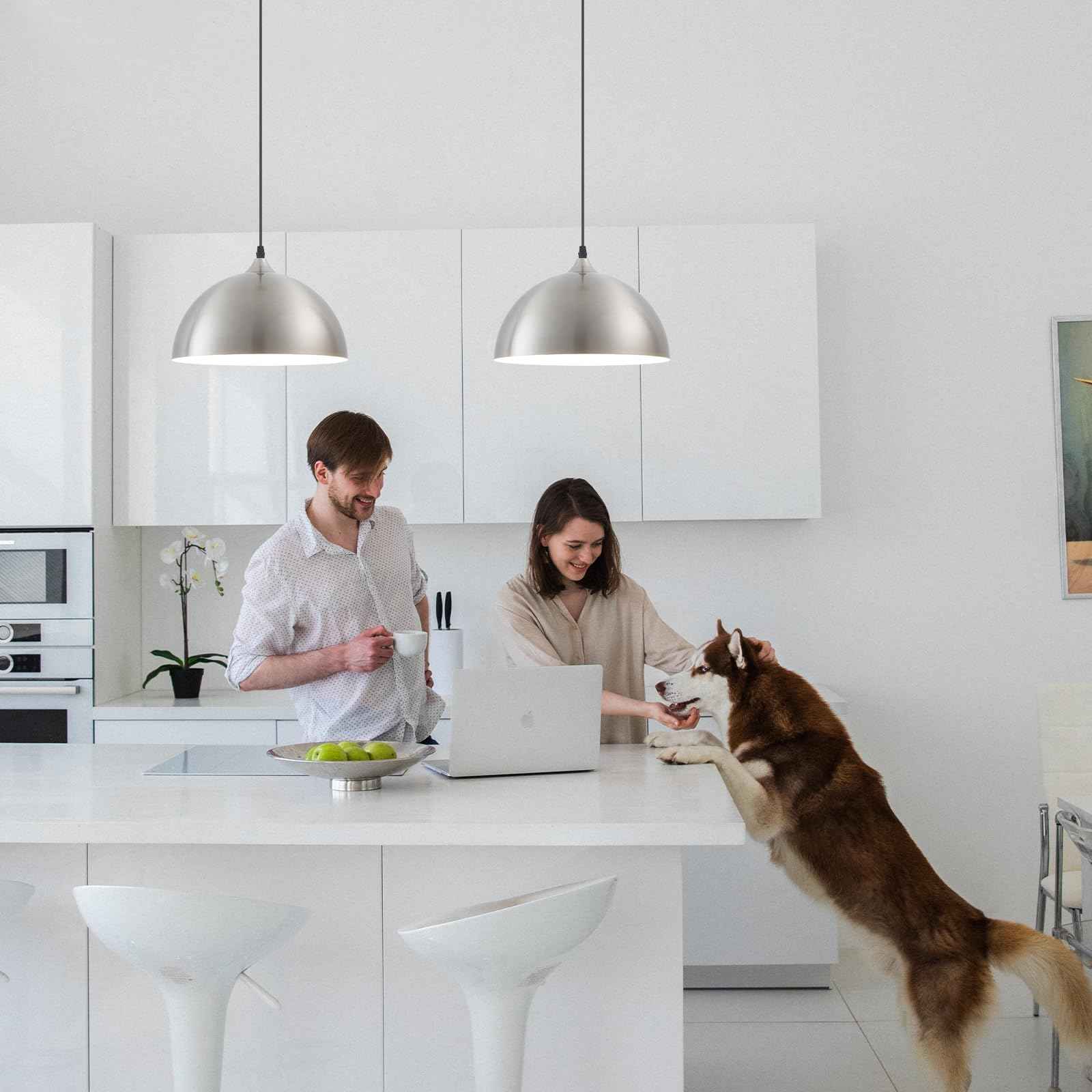 Brushed Nickel Plug in Pendant Light 2 Packs 11.8inch, Farmhouse Pendant Light, Pendant Lights Kitchen Island, Hanging Lights with Plug in Cord 14.7 ft