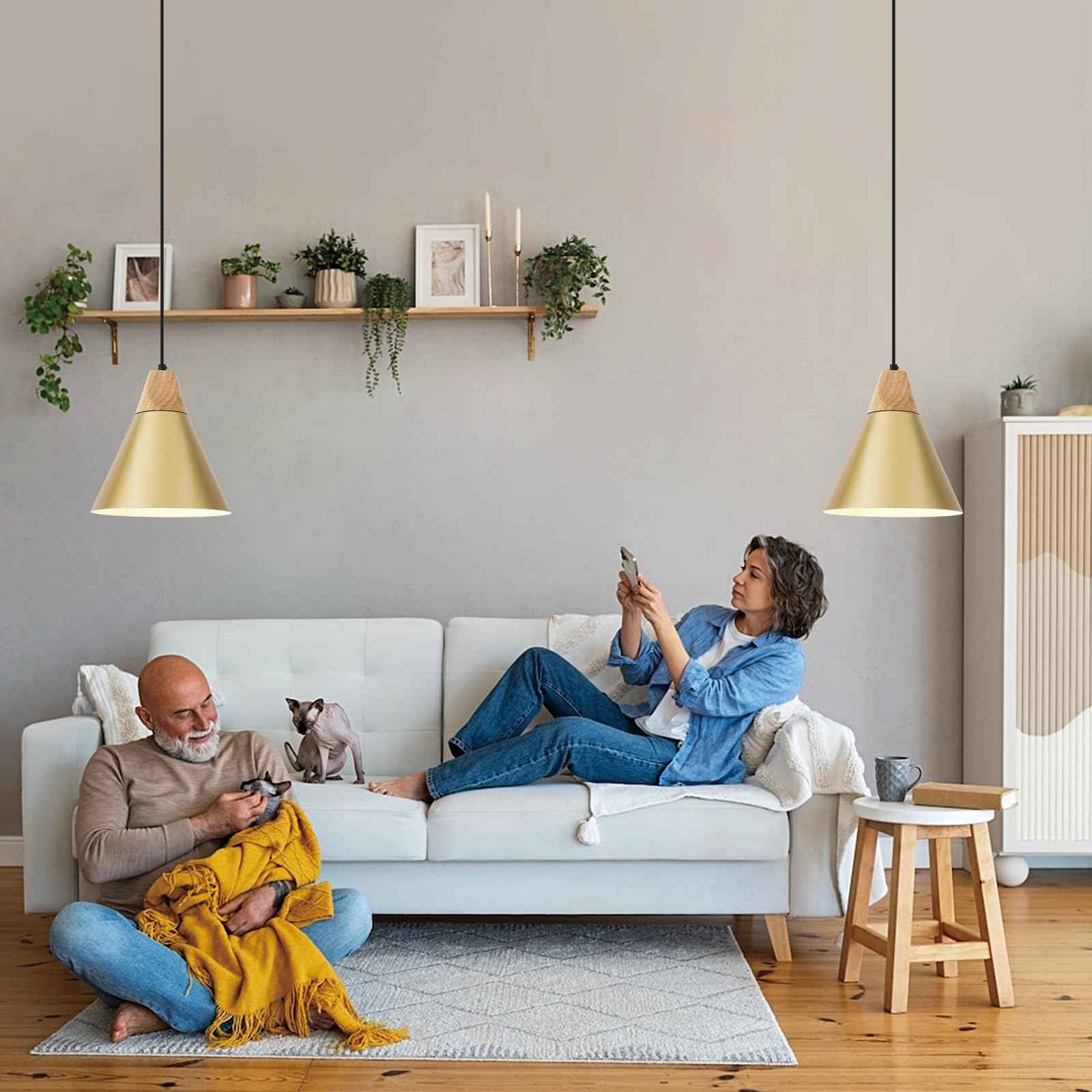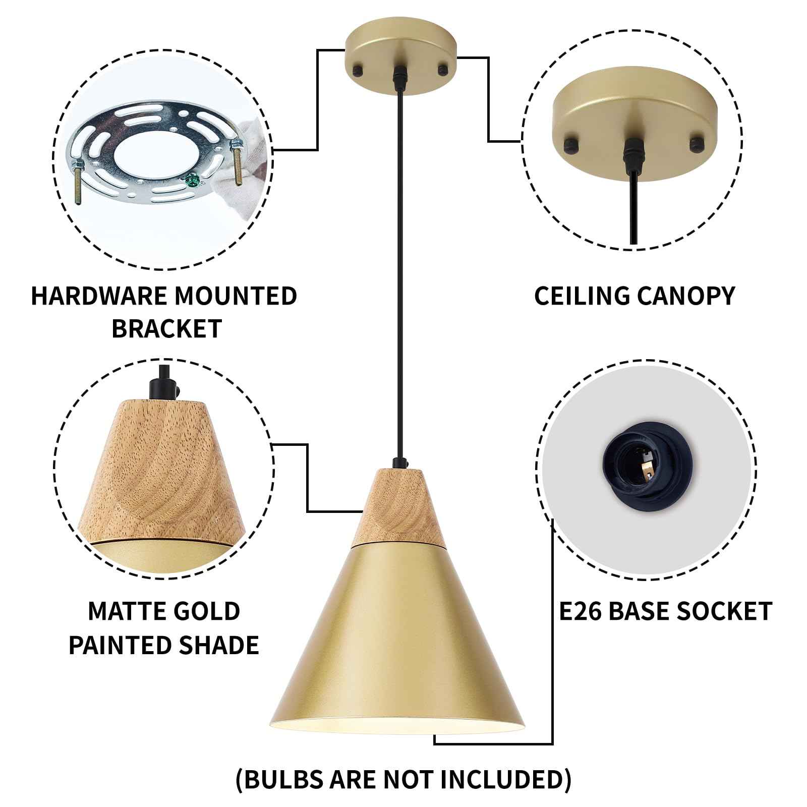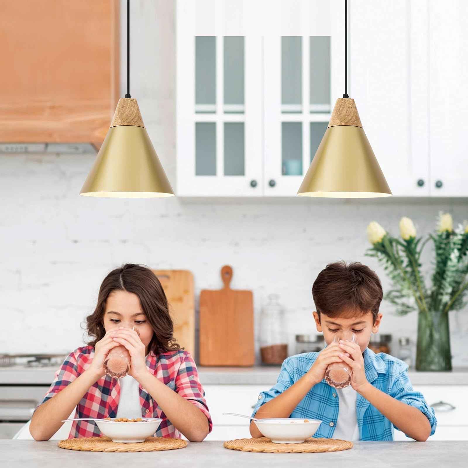 Farmhouse Pendant Light 2 Packs,9.4inches- Gold Pendant Lighting, Industrial Pendant Light, Kitchen Pendant Lights for Office, Bedroom, Living Room, Kitchen Island