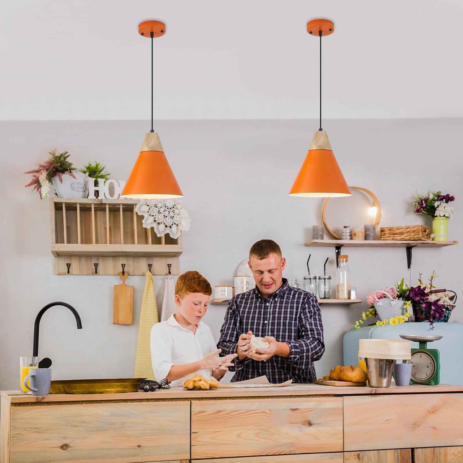 • Vintage Meets Modern: These orange Pendant Lights Kitchen Island (2-pack) blend farmhouse charm with industrial pendant light elegance. Perfect for enhancing the look of your kitchen island, dining area, bar, stairwell, restaurant, or even warehouse with a bold splash of color and a sleek silhouette.