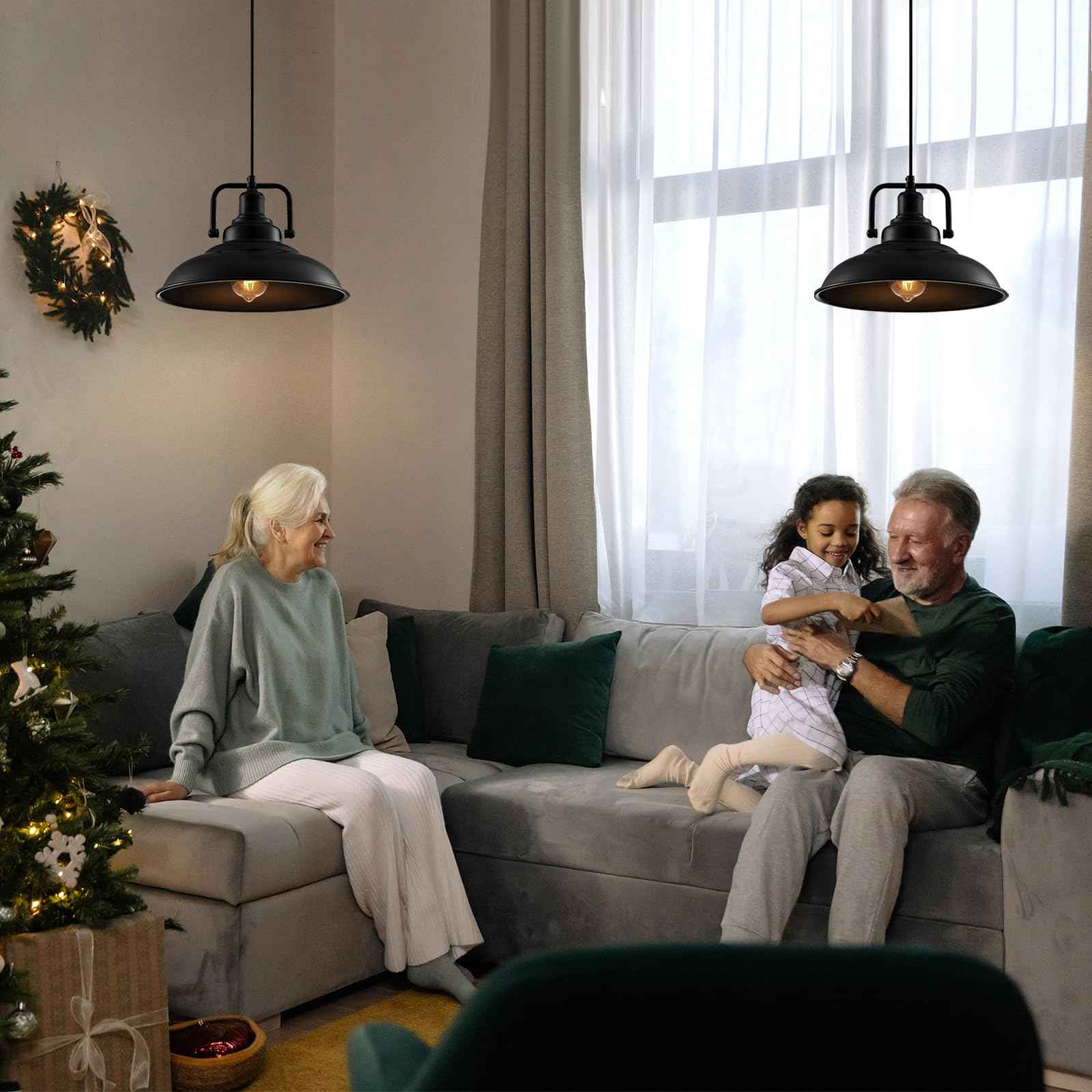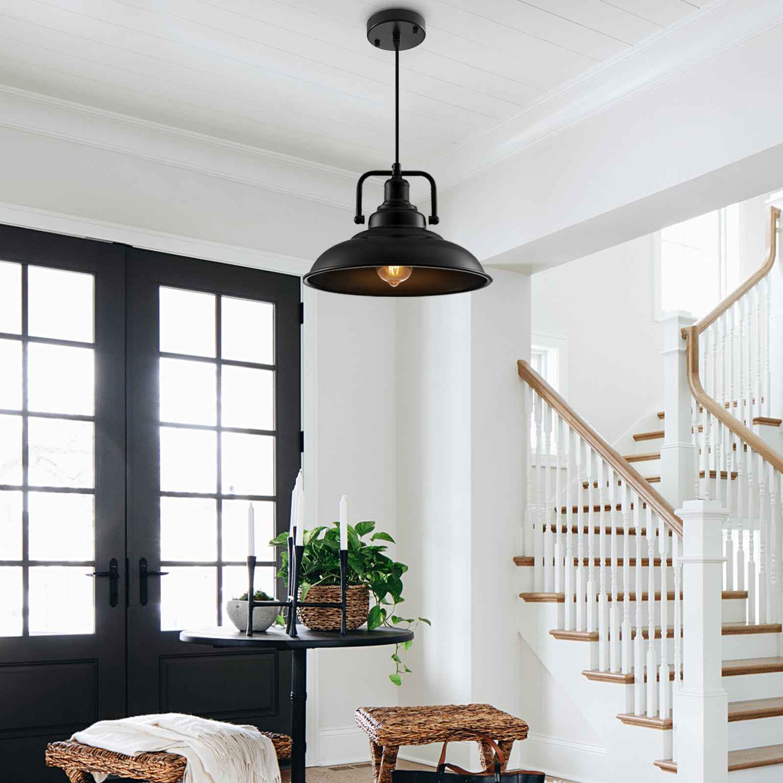 Black Pendant Light 12.5 inches 3 Packs, Farmhouse Pendant Light, Industrial Pendant Lighting, Kitchen Pendant Lights, Pendant Lights Kitchen Island for Dinning Room Entryway Barn
