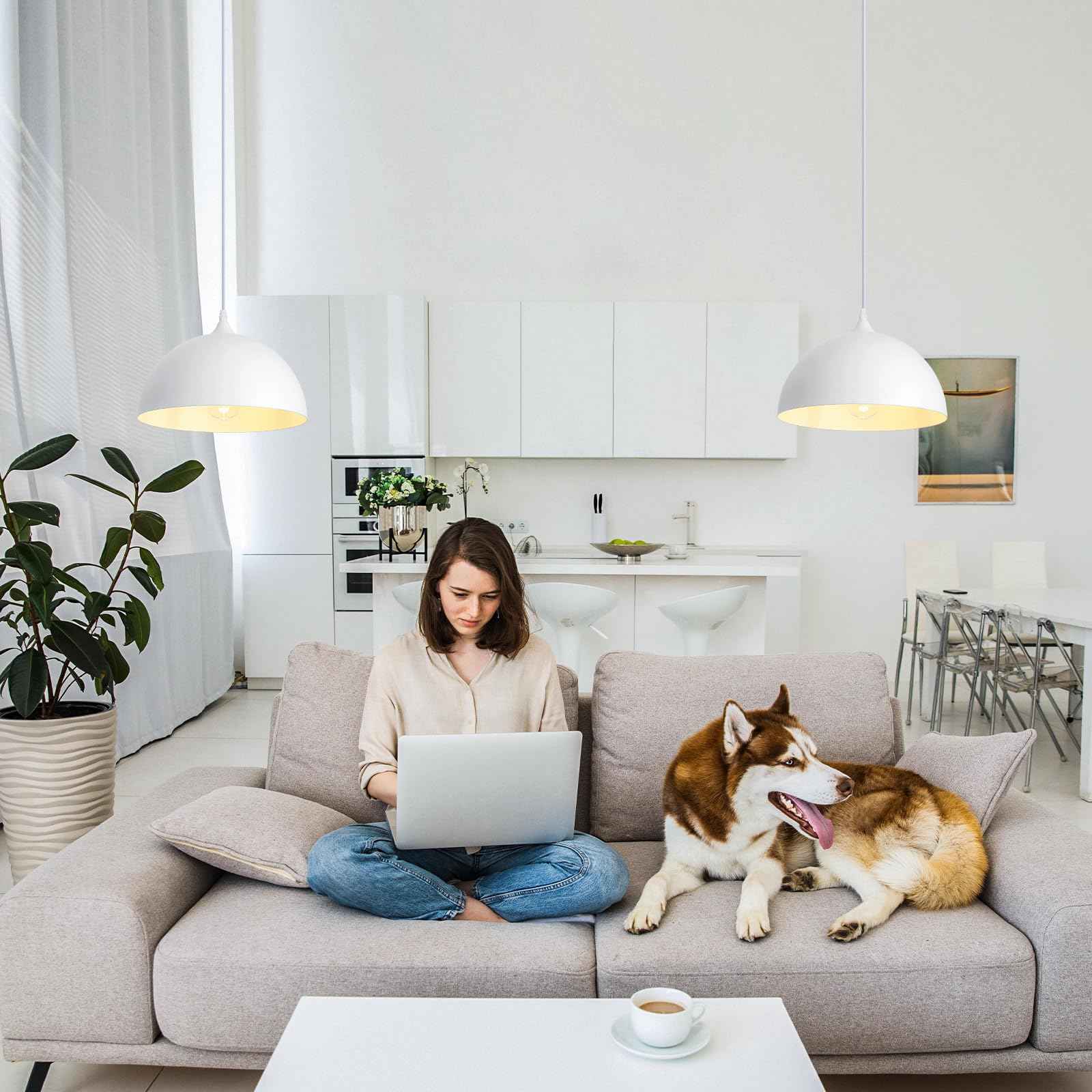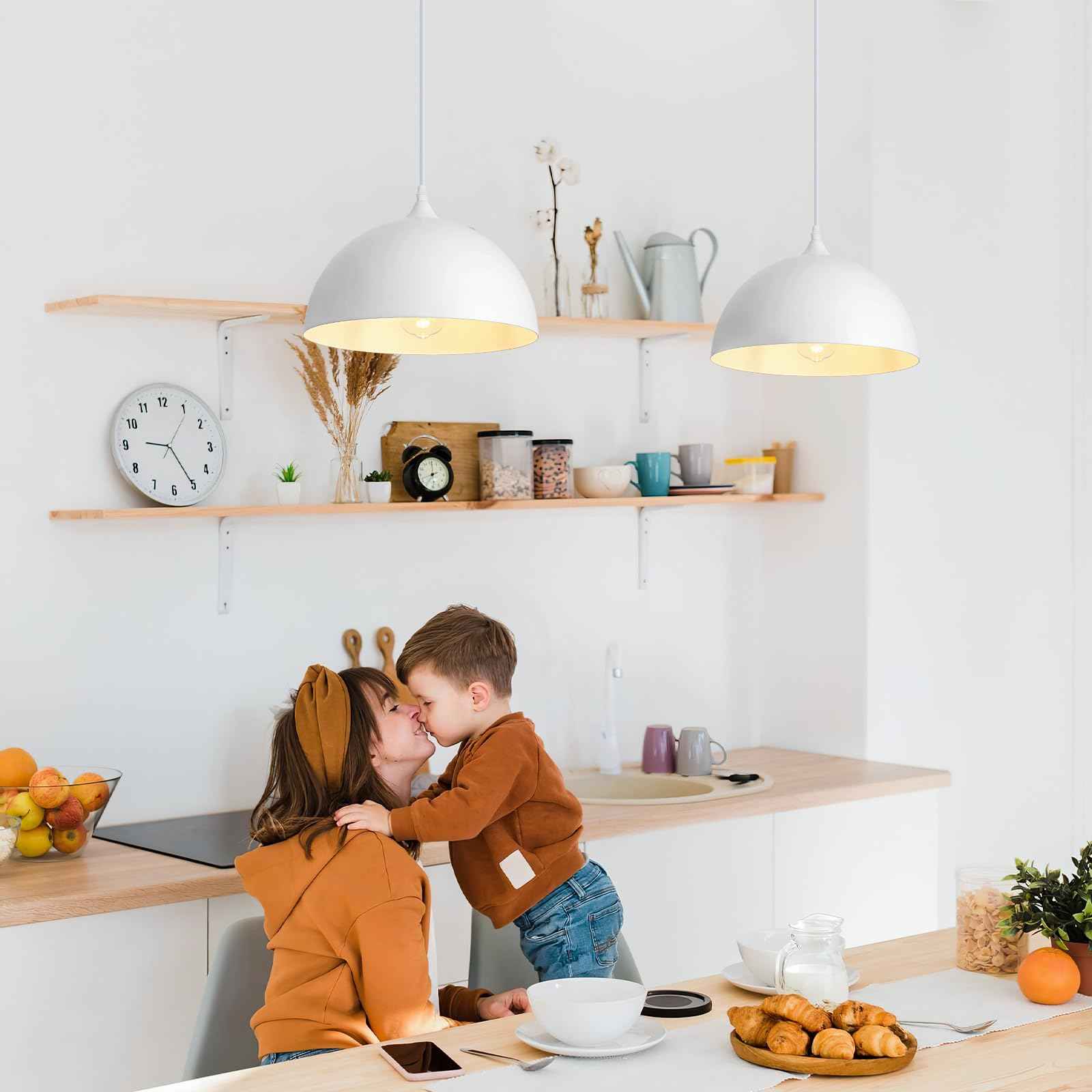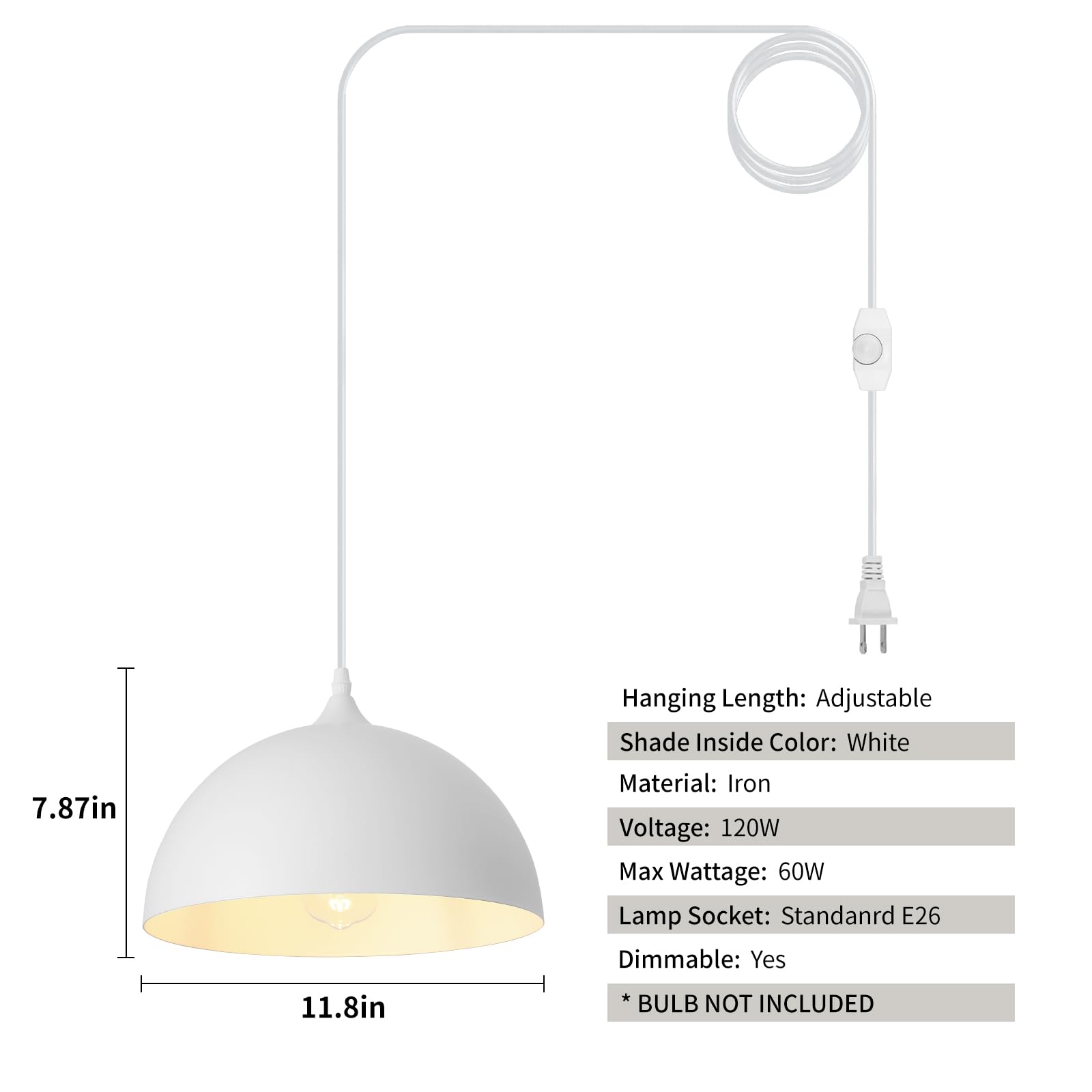 • Perfect Design:This 2 packs plug in pendant light combines both vintage and industrial styles. This farmhouse pendant light is white on the outside and inside. They are perfect for Kitchen, Bedroom, Living Room, Dining Room,Hallway