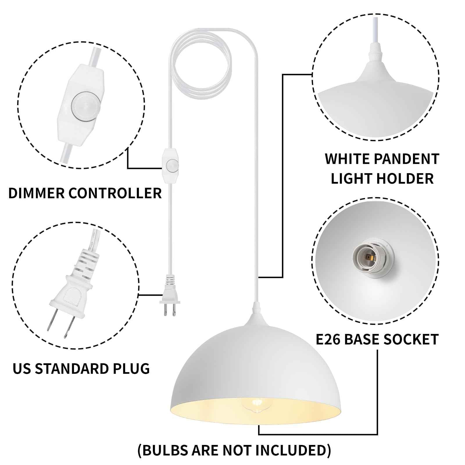 • Easy to Install:The installation steps for this hanging lamp plug in are very simple, you just need to fit the included hooks in the right places and then plug it in and it's ready to use. This white pendant light is an E26 base, which is suitable for most bulbs on the market. In addition, It have a brightness adjustment on the cord to adjust the brightness according to the usage scenario