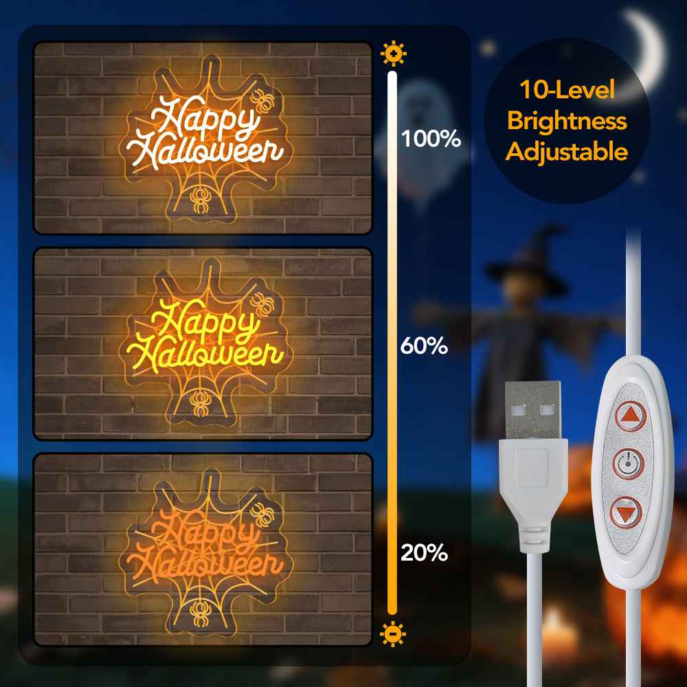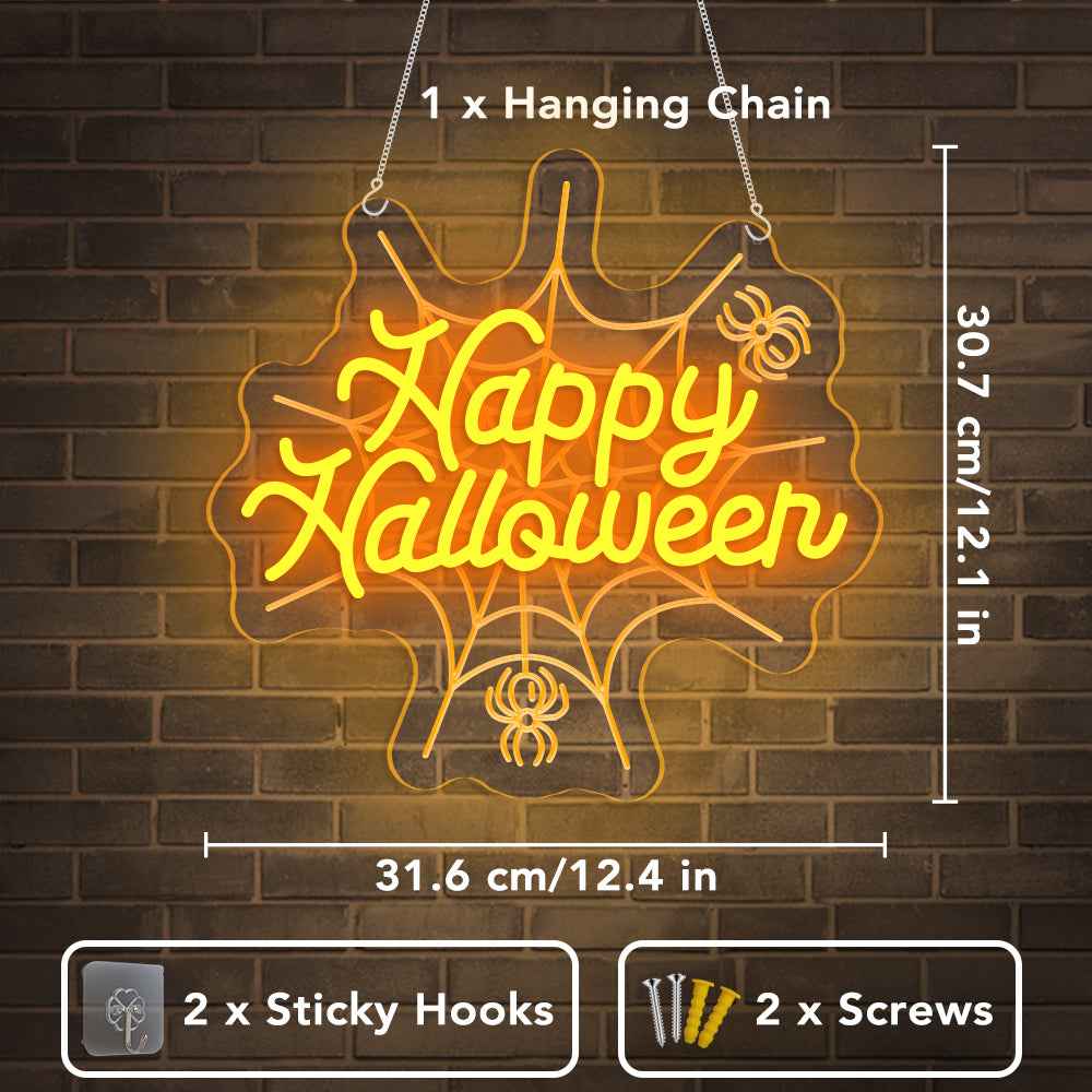 🎃 Happy Halloween Neon Sign – Ignite Your Halloween Spirit: Light up your spooky season with this vibrant "Happy Halloween" neon sign. Crafted with a clear acrylic backboard and easy-to-mount pre-drilled holes, this sign is perfect for decorating your home, parties, or windows. Plug it in to unleash a warm orange glow, bringing festive cheer to your Halloween celebrations.